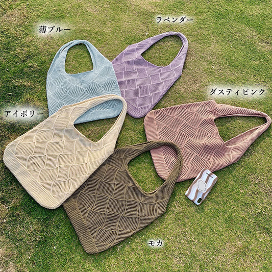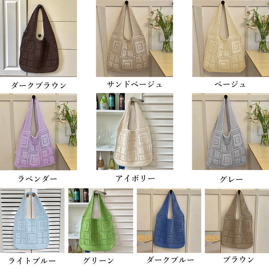 トートバッグ ニット編みバッグ 新作 ワンショルダーバッグ レディース 透かし編み ニット鞄 軽量
