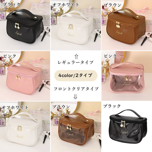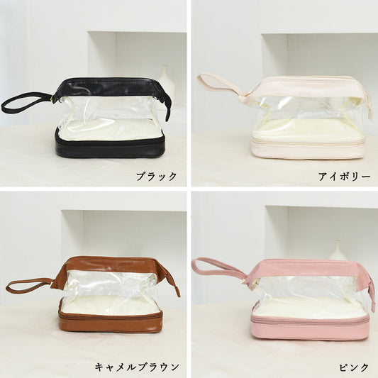 コスメポーチ 二段 クリア 化粧ポーチ 自立 コンパクト メイクポーチ ブラシ入れ 小物入れ メイク道具収納