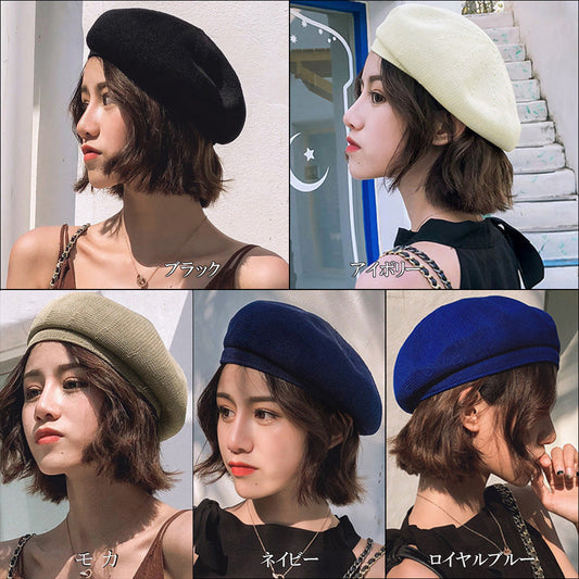 ベレー帽ニット レディース 帽子 秋冬帽子 レディースベレー帽 全14色イエロー