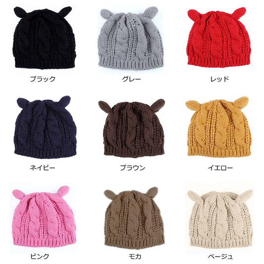 レディース ニット帽 猫耳帽子 ねこみみ 秋新作 毛糸