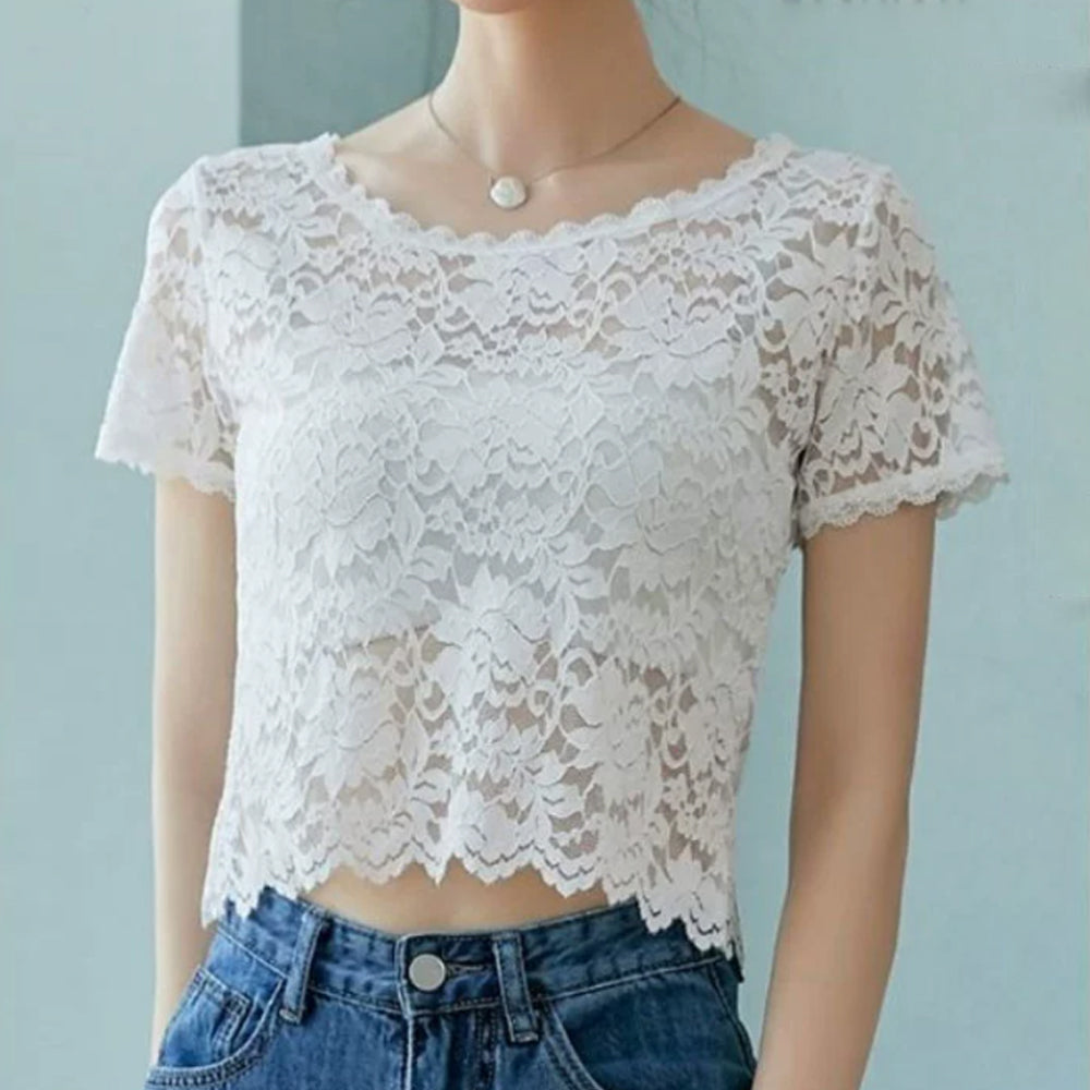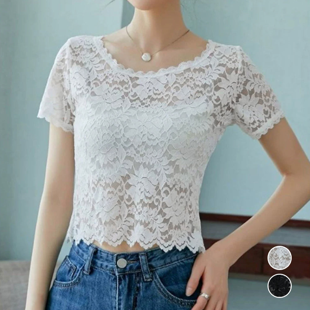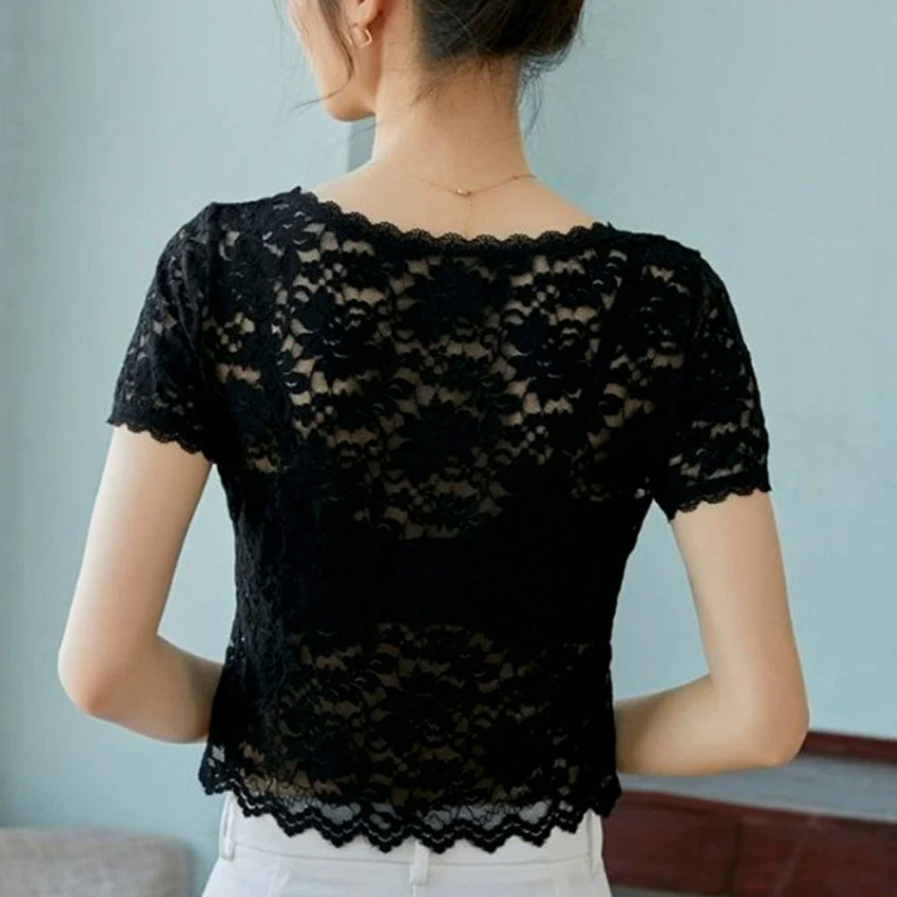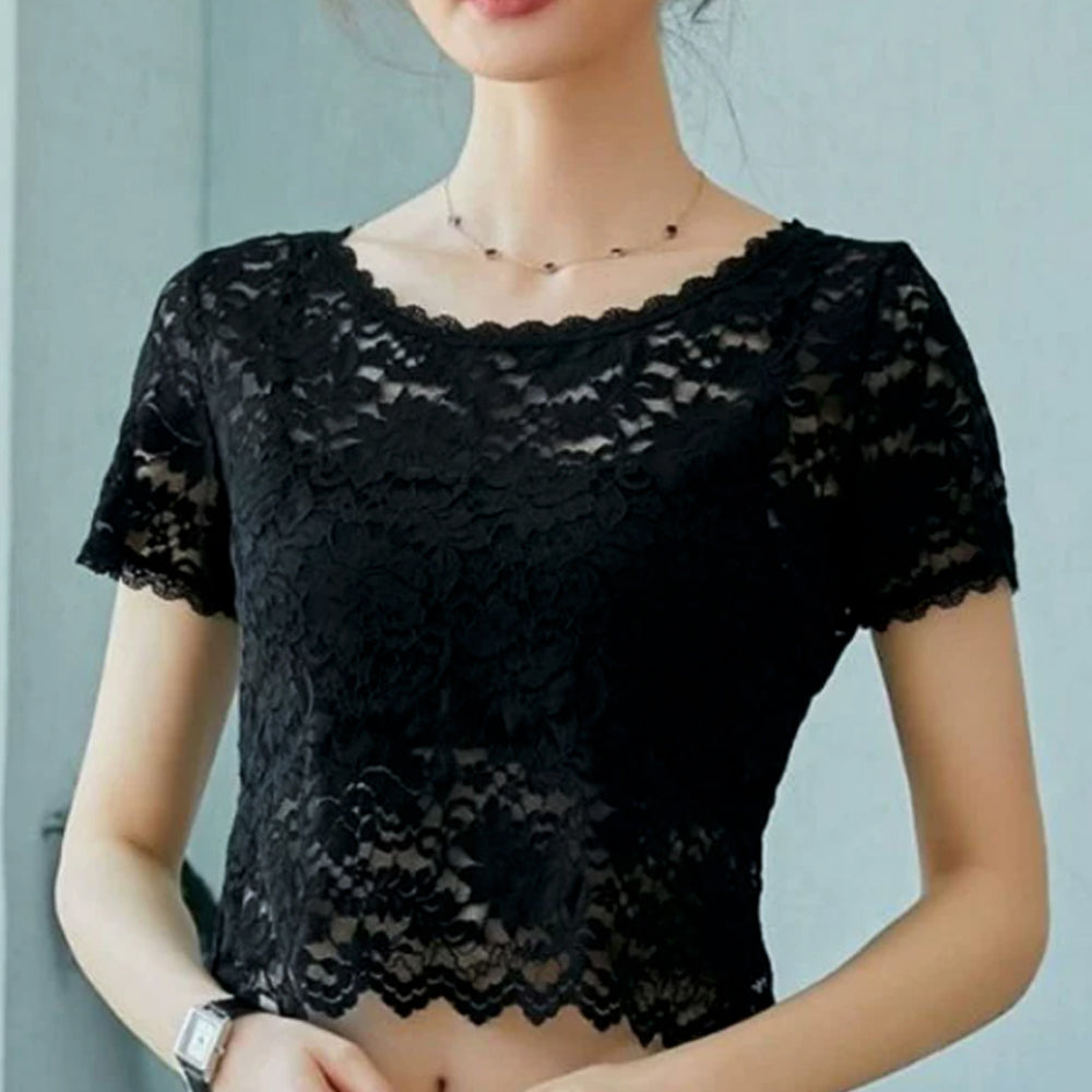 エレガント ブラウス シャツトップス 透け感 レディース 重ね着インナー 大人可愛い 肌見せ 薄手 シアーブラウス きれいめ トップス 花柄レーストップス 半袖ブラウス 春夏 繊細なレース素材を使用、大人っぽくフェミニンに仕上げた半袖ブラウス 程よく体にフィットするのですっきりとしたシルエット キャミやチューブトップなどとの重ね着がおすすめ 素材:ポリエステル100% カラー:ブラック/ホワイト サイズ:ワンサイズ 着丈:約47cm 肩幅:約33cm 袖丈:約17cm ゆき:約33.5cm 身幅:約42cm 胸囲:約84-120cm 裏地:なし 伸縮性:あり 透け感:あり ※透け感がございますので、インナーの着用をおすすめいたします
