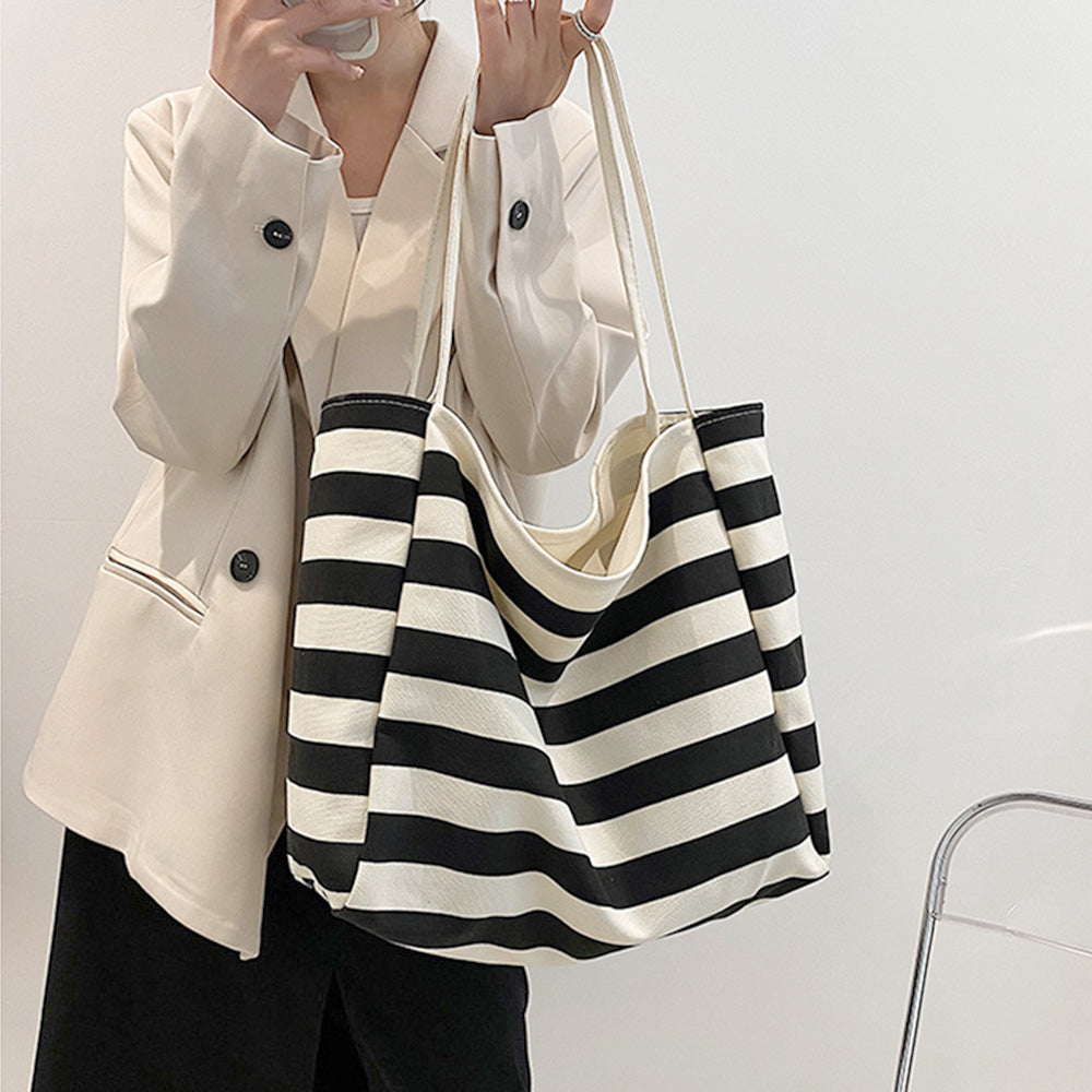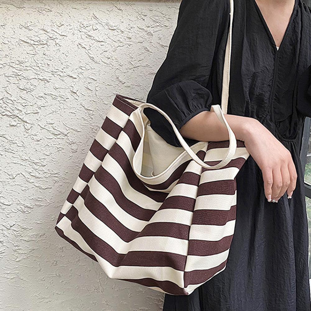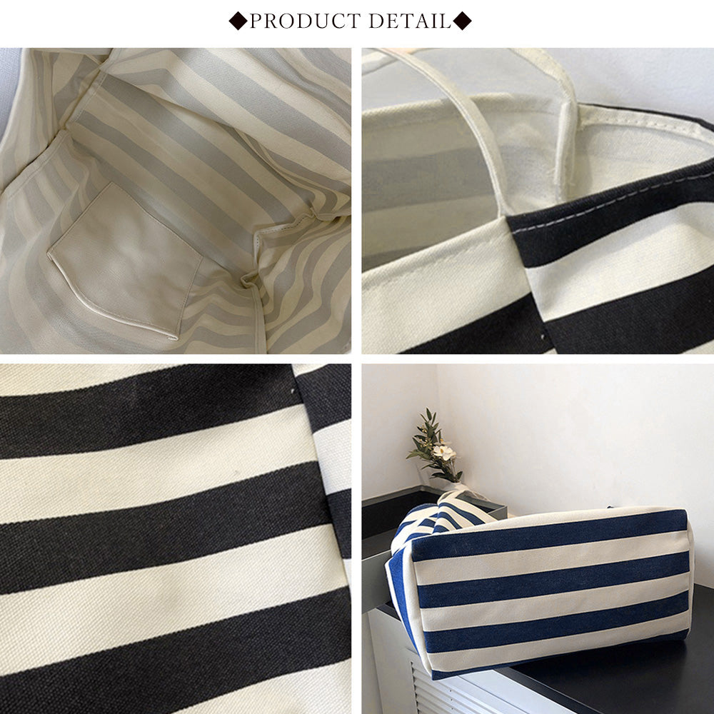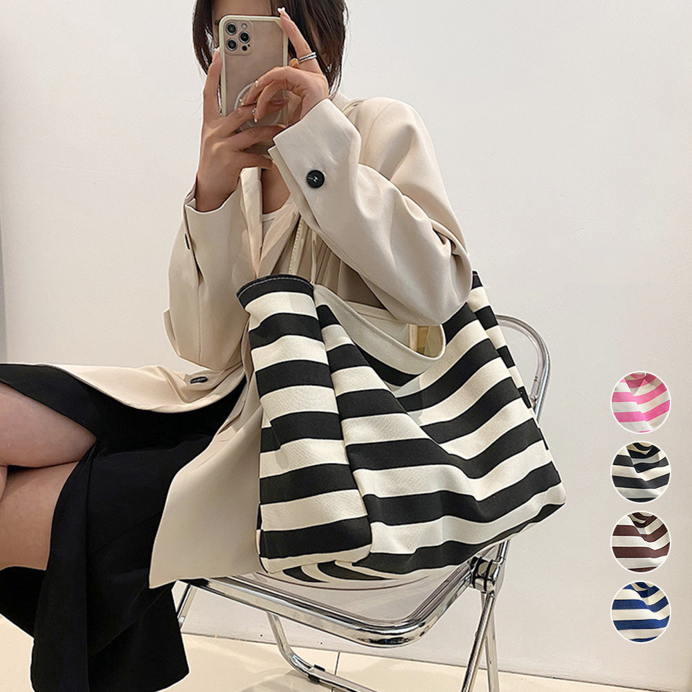 肩掛けバッグレディース 大収納マザーズバッグ カジュアルバッグ 通学通勤かばんユニセックス 学生 大きめ エコバッグ 帆布レジャー旅行鞄 大人トートバッグ秋 人気 手持ちバッグ マチが広がる大容量キャンバストートバッグが新登場 キャンバス生地に太目のボーダープリントをした 長財布、雑誌やA4ファイル、携帯、ペットボトル、化粧品などしっかり収納できる デイリー使いにはもちろん、旅行やお出かけの時のサブバッグ、ショッピング用のエコバッグとしても重宝する 素材:キャンバス カラー:ブラック/ネイビー/ブラウン/ピンク サイズ: 高さ:約34cm 底横幅:約37cm マチ:約19cm 持ち手高さ:約26cm(調節不可、取り外し不可)重さ:約296g 裏地:なし 内ポケット:あり