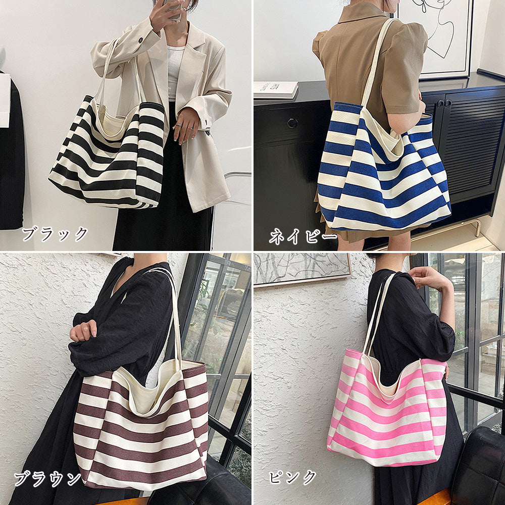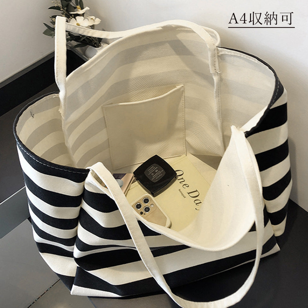 トートバッグ ボーダーキャンバス a4 大容量 肩掛けバッグ レディース 大収納 マザーズバッグ カジュアル
