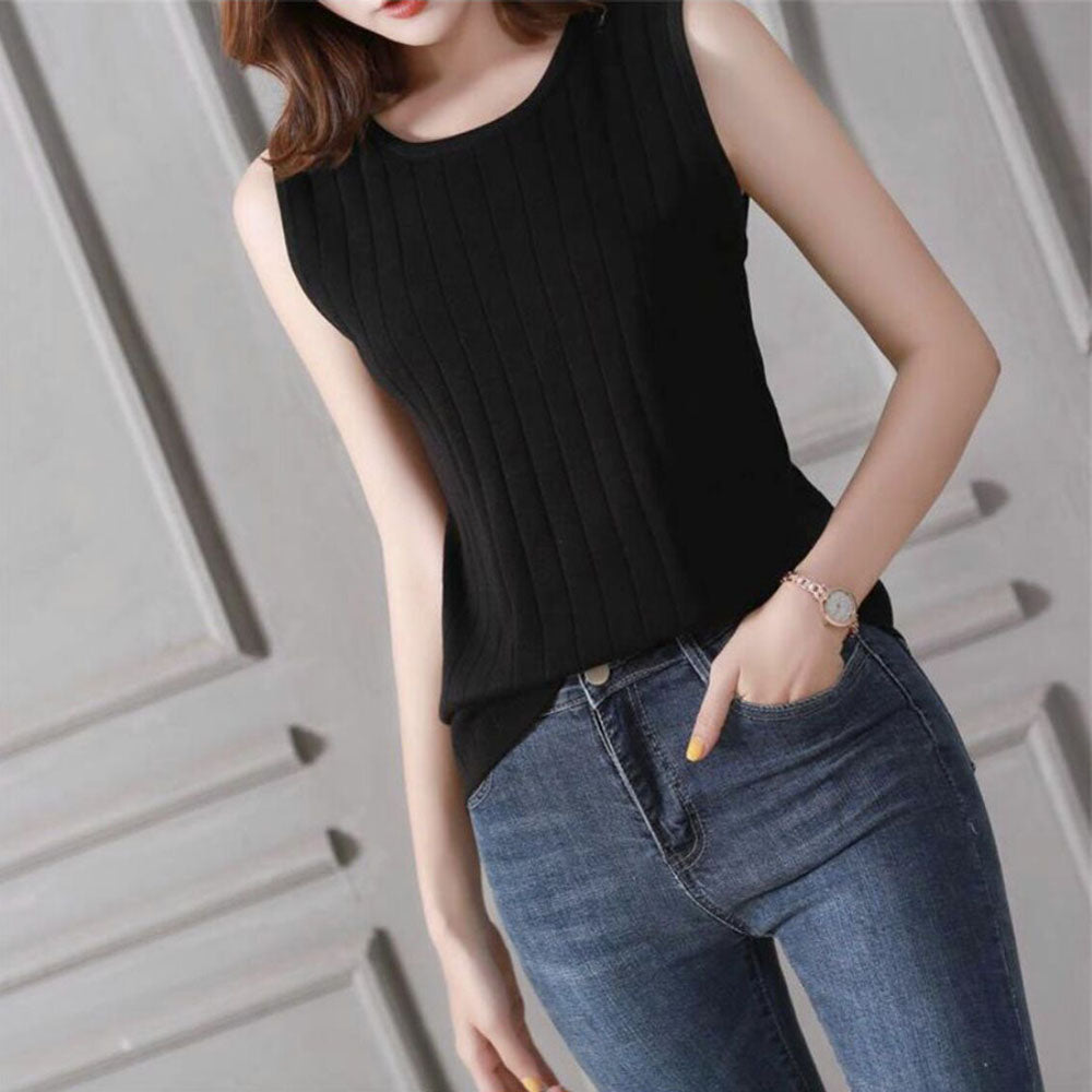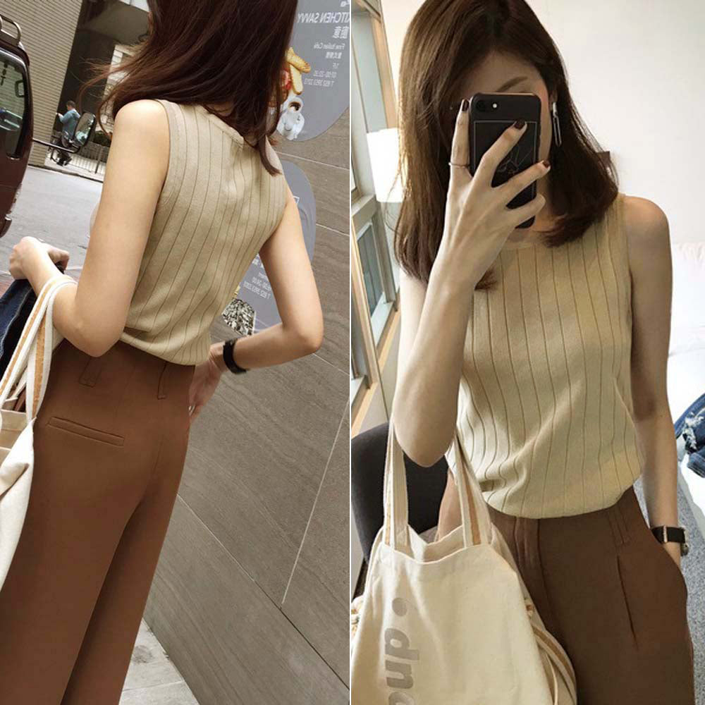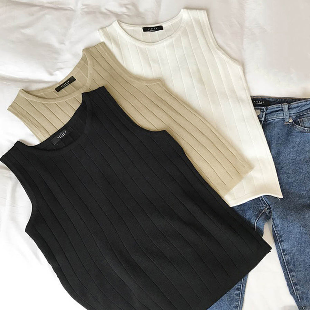 リブニット タンクトップ ニットトップス サマーニット カジュアル ショート丈 ニットベスト ノースリーブニットカットソー