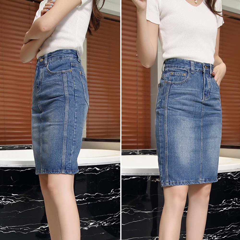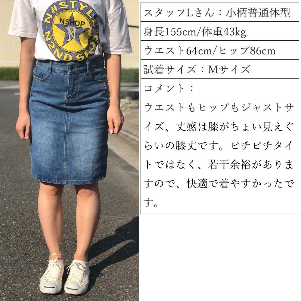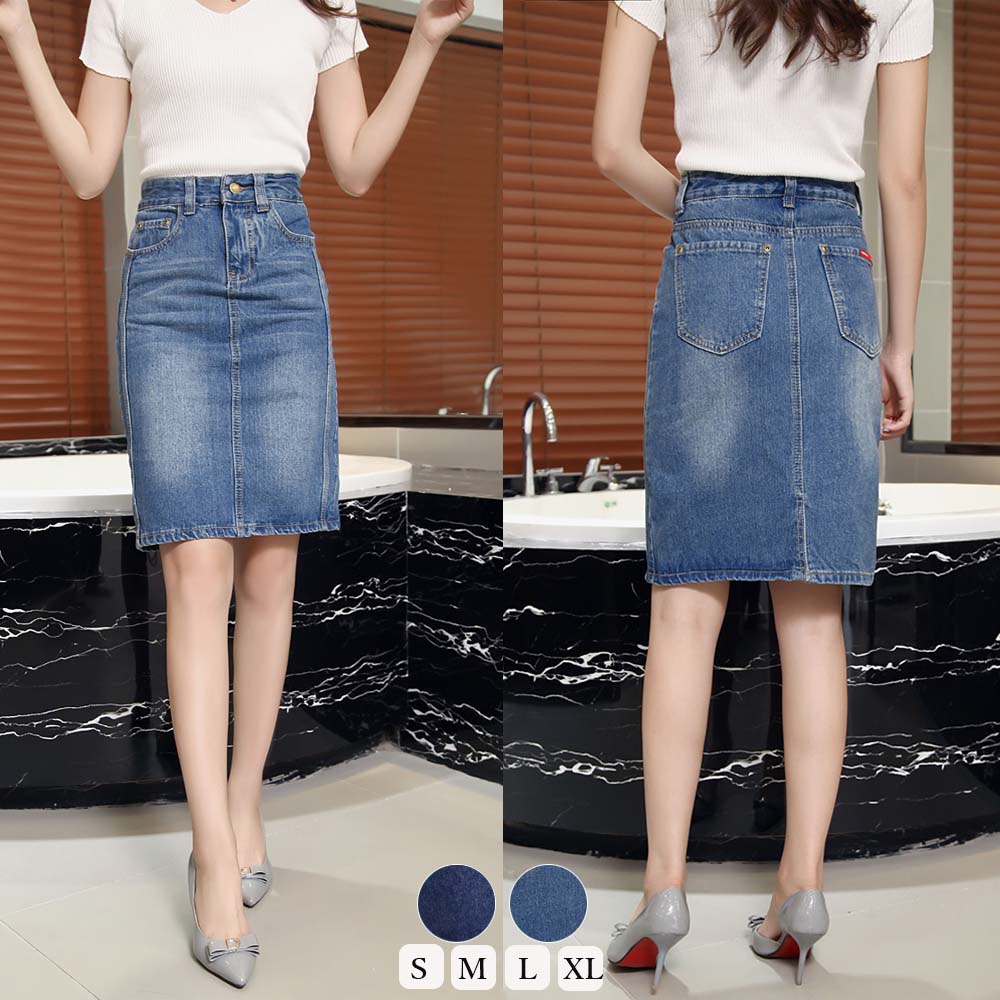 引き締め感のあるタイトデザインで小尻&美脚効果が抜群の膝丈デニムスカート バッグスリット入りで動きやすさも後ろ姿もばっちり、セクシーでも上品エレガント ボリューム感のあるトップスとの相性が良く、メリハリのあるボディラインを綺麗に見せるシルエット 素材:綿100% カラー:インディゴ/サックス サイズ:S/M/L/XL [S]スカート丈:約50cm ウエスト:約62cm ヒップ:約84cm [M]スカート丈:約51cm ウエスト:約67cm ヒップ:約87cm [L]スカート丈:約52cm ウエスト:約72cm ヒップ:約90cm [XL]スカート丈:約53cm ウエスト:約75cm ヒップ:約93cm 裏地:なし 伸縮性:なし 透け感:なし