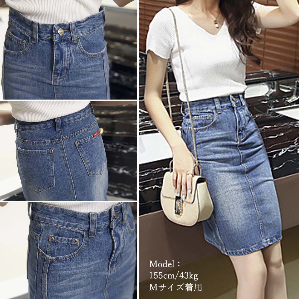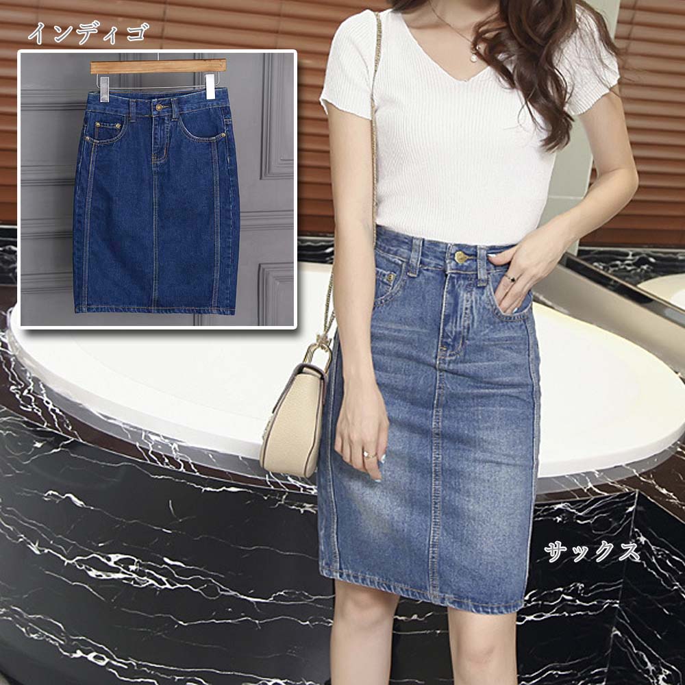 デニムスカート レディース タイトスカート ひざ丈 スリットスカート 無地スカート カジュアル フェミニン 通勤 通学 スカート 膝丈