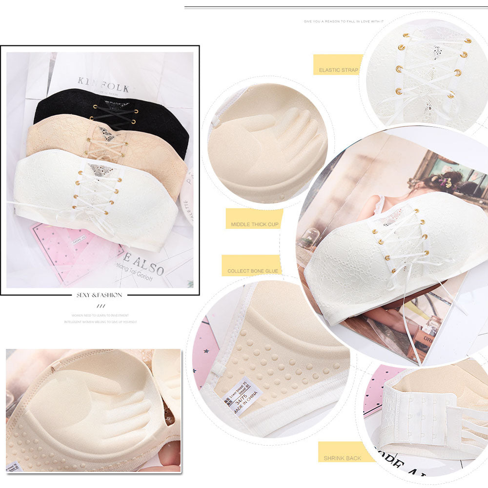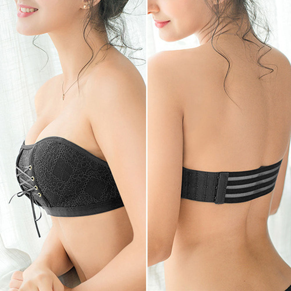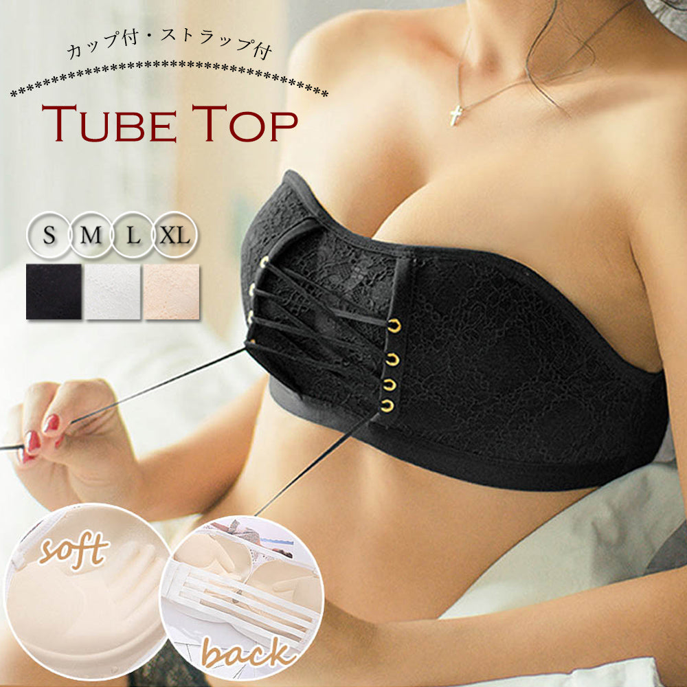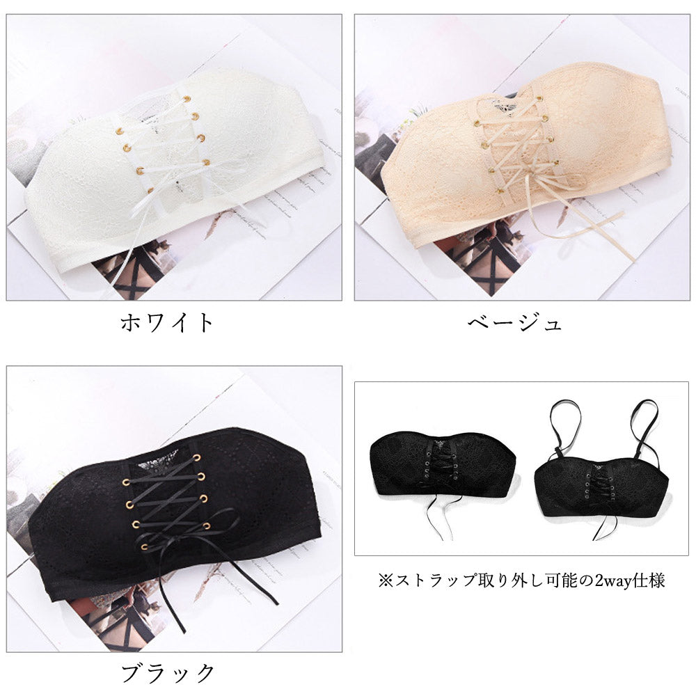 チューブトップ ブラ 落ちない ベアトップ カップ付 ブラトップ レースアップ