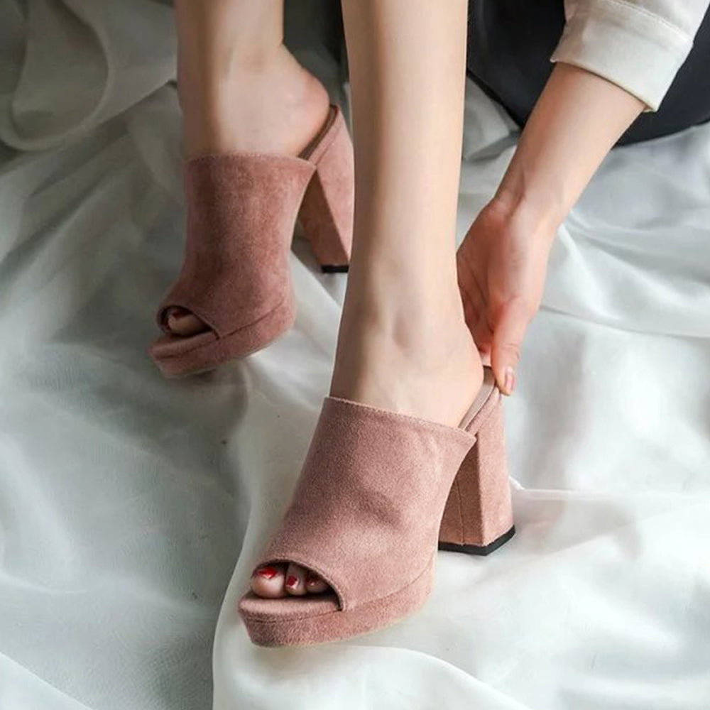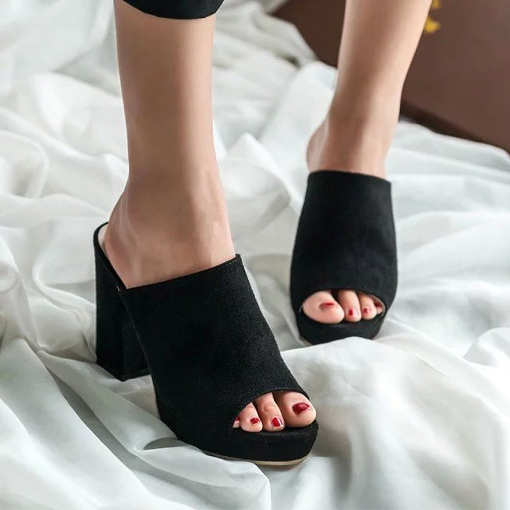 普段使いでもオフィシャルシーンでも使える太ヒールのスエード調サンダル スポッと足を入れるだけでさっと履けるミュールデザイン、つま先が開いていて好きなネイルもしっかり見せられるので春夏にピッタリ 歩きやすさと美脚力を重視し仕上げた最強アイテム、全身のバランスがよくて脚がきれいに見えるおススメの1足 カラー:ブラック/グレー/ピンク 素材:合成繊維-合成底 サイズ:22.5cm(35)/23.0cm(36)/23.5cm(37)/24.0cm(38)/24.5cm(39) 甲幅:[全サイズ]約17cm 底幅:[全サイズ]約6.5cm ヒールの高さ:[全サイズ]約10.5cm ヒールの幅:[全サイズ]約3.8cm ストームの高さ:[全サイズ]約2cm 重さ(両足):約585g-615g