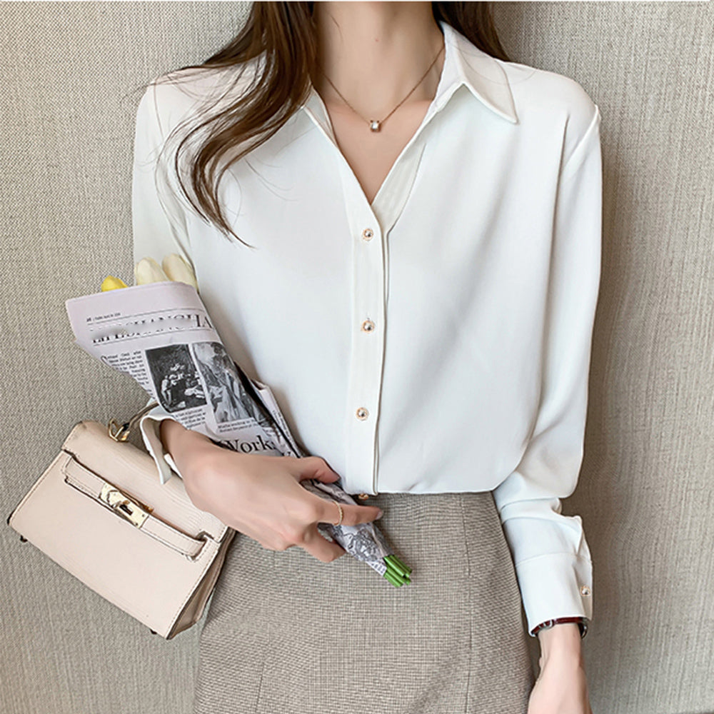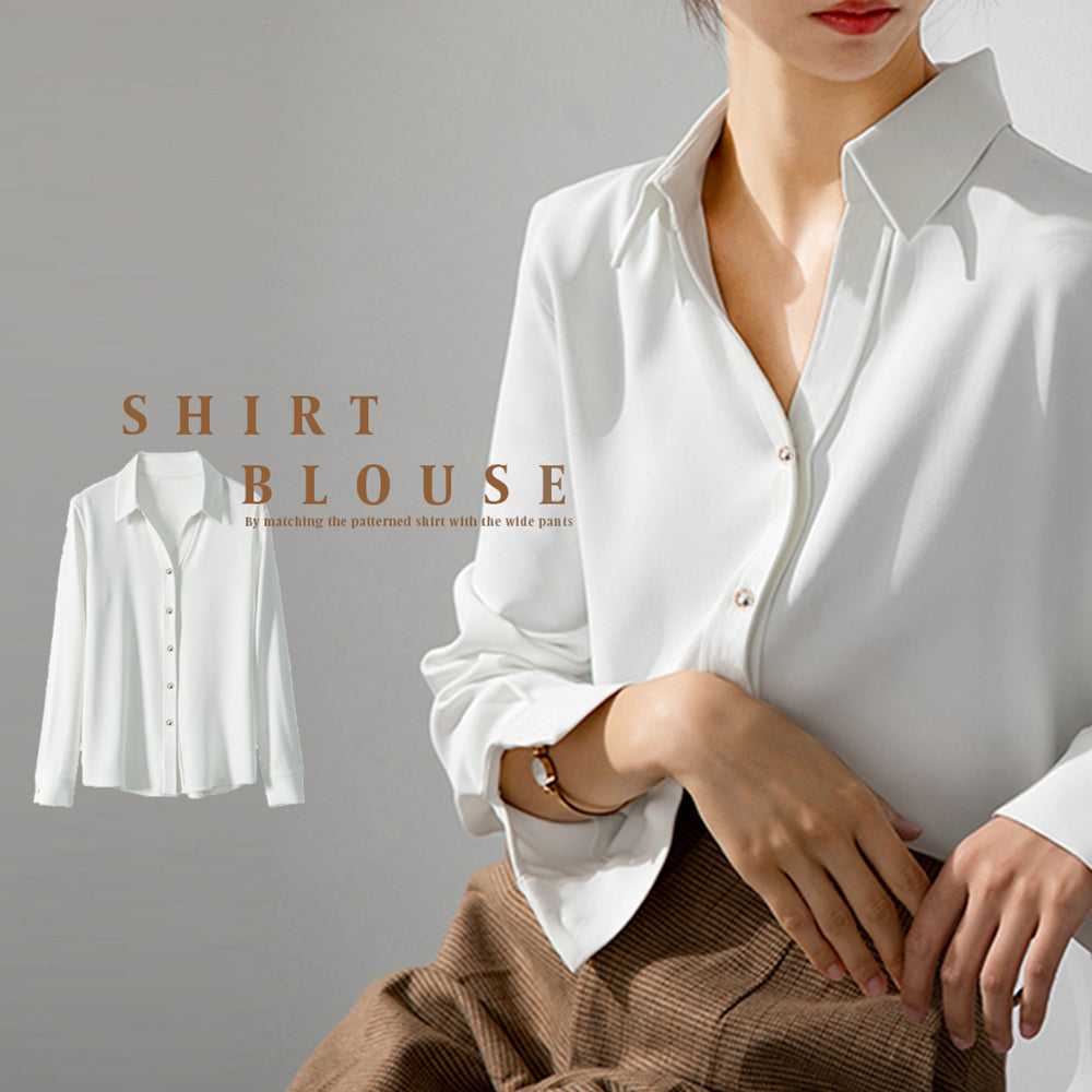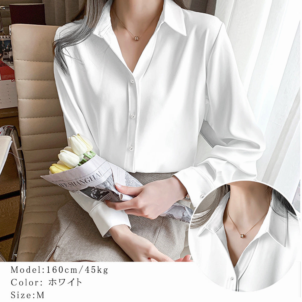 シャツブラウス 長袖 レディース Vネックシャツ おしゃれ ワイシャツ 無地