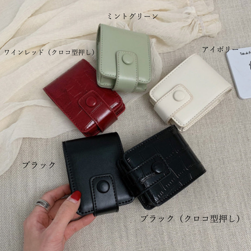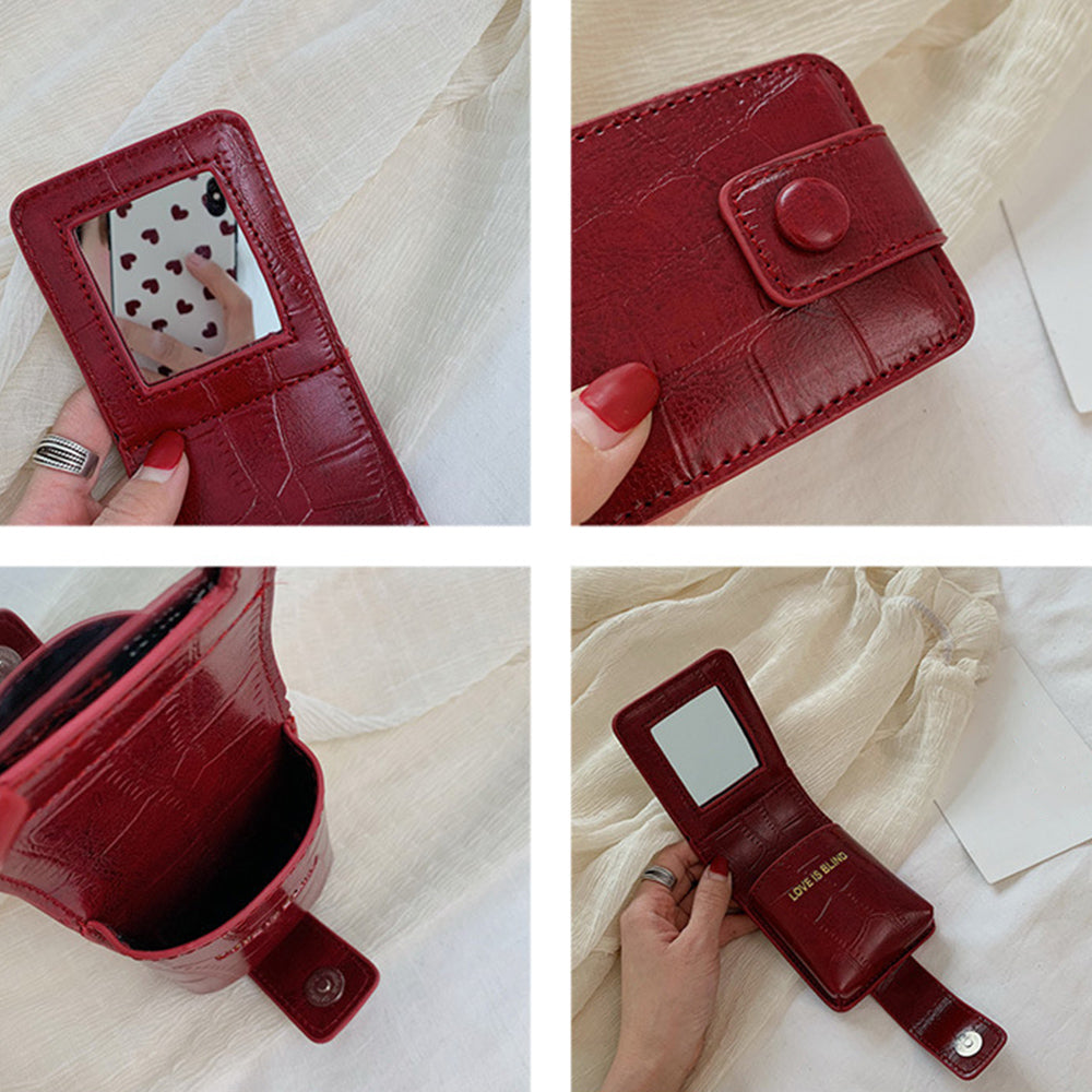 レディース 口紅ケース ミラー付き リップポーチ メイクポーチ 実用 化粧ケース グロスメイク リップ収納ケース プレゼント ギフト 小型サイズなので小さいカバンにも持ち運び便利なリップ収納ケース 鞄の中で探す手間が無くなる!リップクリームや口紅など、サッと出せて、すぐに使える、ボタンの閉鎖により、持ち運びが容易な場所にコンテンツが確保されます。 高級感漂うクロコダイル調、パーティーや結婚式でも大活躍。ドレスに合うエレガントなデザイン 素材:合成皮革 カラー:ブラック/ブラック(クロコ型押し)/アイボリー/ミントグリーン/ワインレッド(クロコ型押し) サイズ: 高さ:約10cm 底横幅:約8cm マチ:約3cm 重さ:約103g 裏地:なし 内ポケット:なし