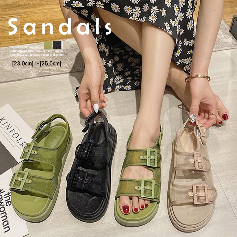 透け感を楽しめるメッシュ素材のウェビングテープが女性らしいスポーツサンダル 通気性に優れているのはもちろん、脱ぎ履きもより簡単になり、極上の履き心地をお楽しみい 厚底ながら安定感抜群のため履きやすく、ボリューム感のあるシルエットで幅広いスタイルに合わせやすい 甲素材:合成繊維底素材:合成底 カラー:ブラック/ベージュ/グリーン サイズ:23.0cm(36)/23.5cm(37)/24.0cm(38)/24.5cm(39)/25.0cm(40) (カッコ内は靴底表記となります) [23.0]長さ:約23.0cm 幅:約9.5cm ヒール:約4cm [23.5]長さ:約23.5cm 幅:約9.5cm ヒール:約4cm [24.0]長さ:約24.0cm 幅:約10cm ヒール:約4cm [24.5]長さ:約24.5cm 幅:約10cm ヒール:約4cm [25.0]長さ:約24.0cm 幅:約10cm ヒール:約4cm 重さ(両足):約581g-733g