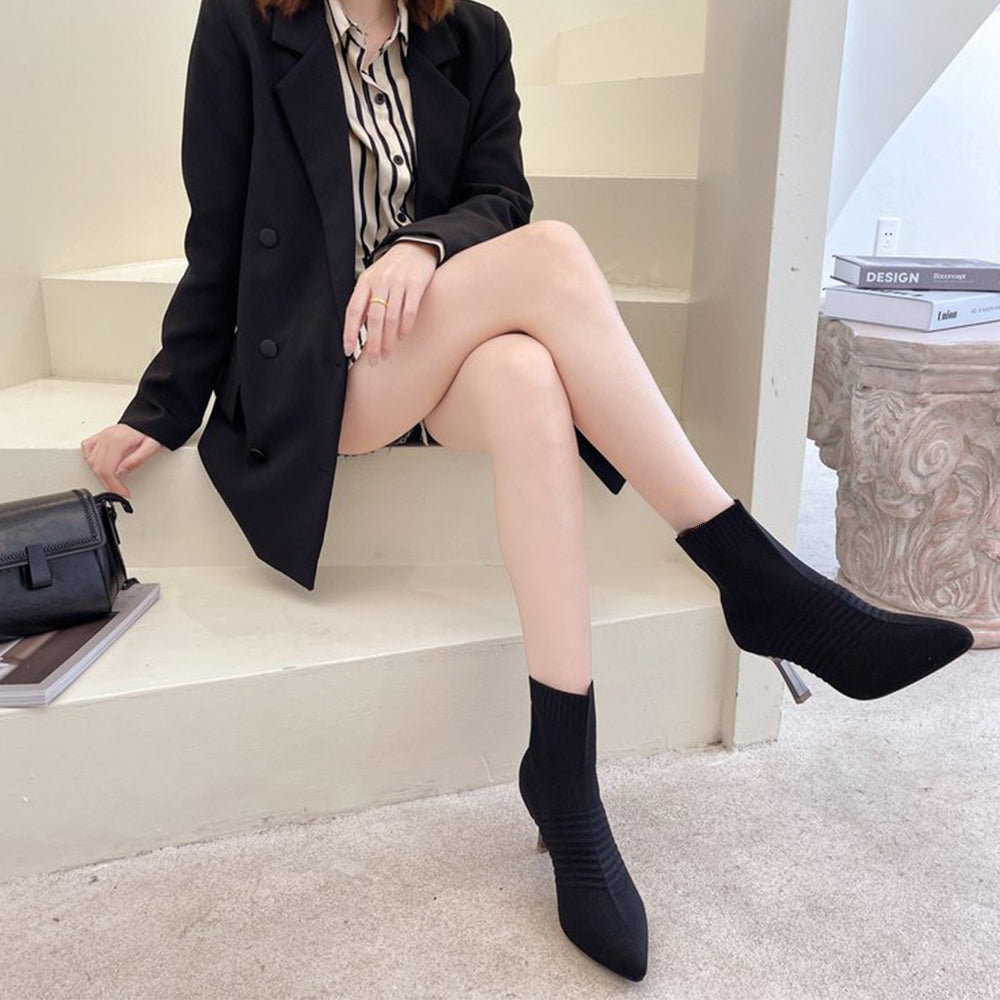 ニットソックスブーツ ポインテッドトゥ