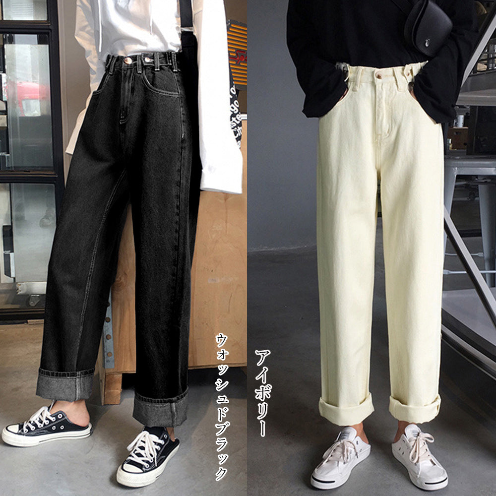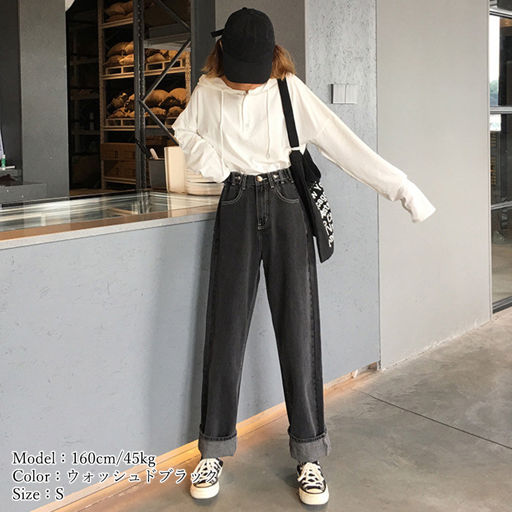 ストレートデニムパンツ レディース 股上深め ハイウエスト 美脚 ジーパン 脚長