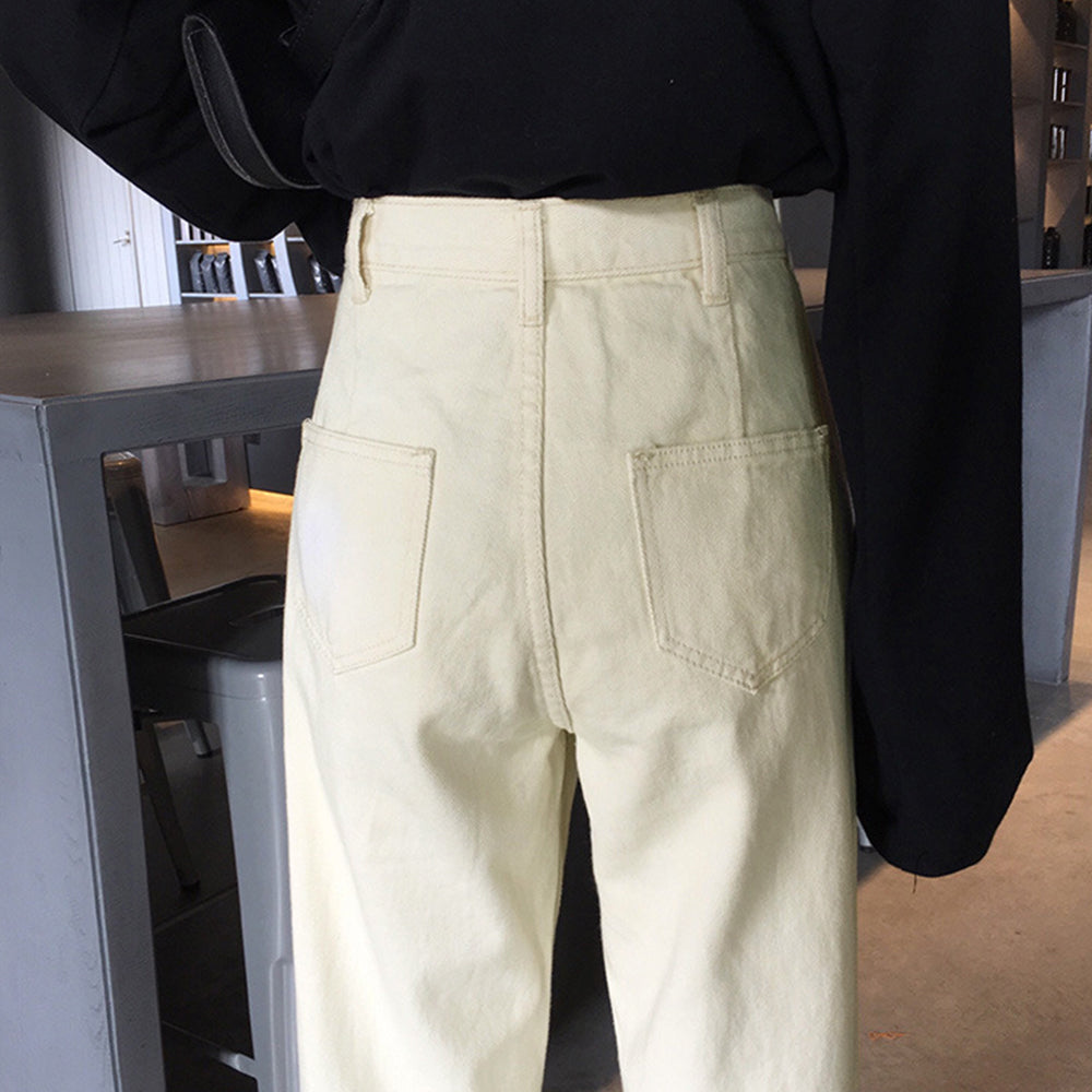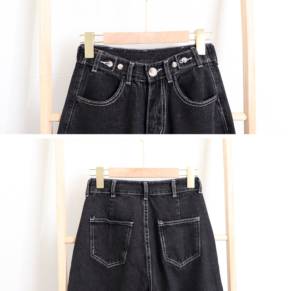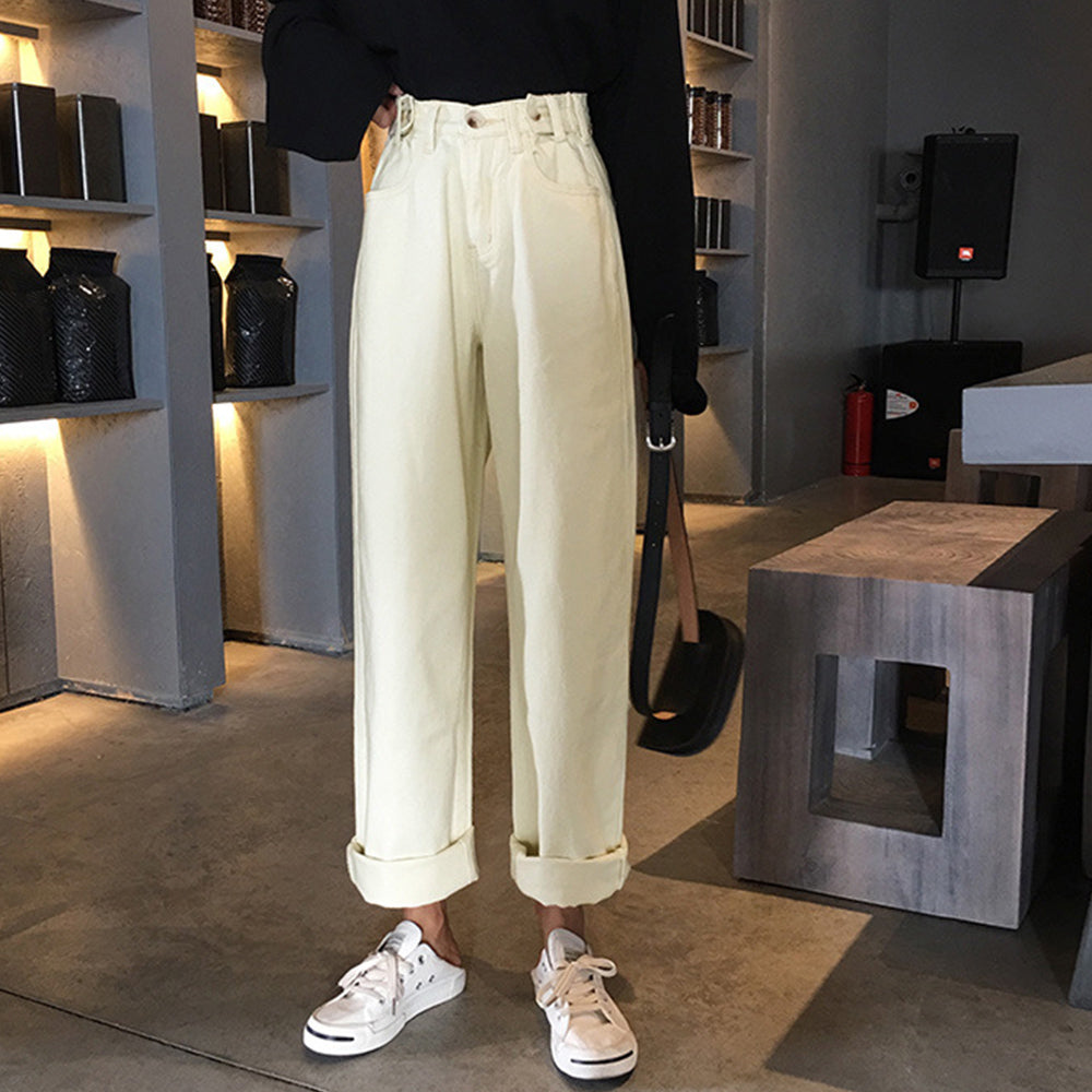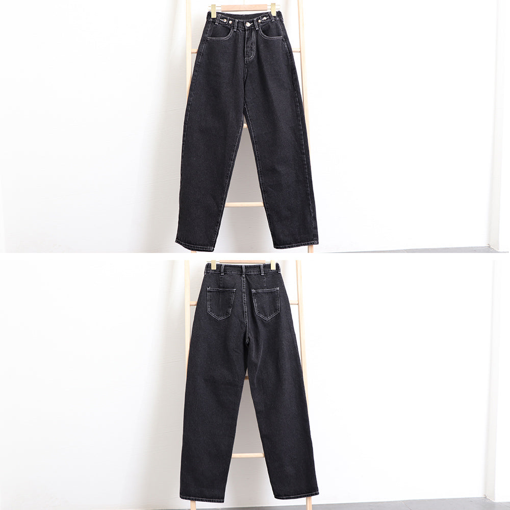 ハイウエストに股上深めDesignで脚長に見えてSTYLEUP力がバッチリ、オーバーシャツなどトップスINコーデもショート丈トップスも合うマルチパンツ ウエストに調整ボタン付きで腰周りの穿き心地の微調整が可能、裾ロールアップのアンクルパンツ風で爽やかで軽やかに穿くのが旬顔コーデポイント 素材:綿95%+ポリエステル5% カラー:ウォッシュドブラック/アイボリー サイズ:S/M/L [S]着丈:約98cm 股下:約68cm ウエスト:約58-62cm(ボタンで4cm調節可能) ヒップ:約98cm もも周り:約56cm [M]着丈:約99cm 股下:約70cm ウエスト:約62-66cm(ボタンで4cm調節可能) ヒップ:約100cm もも周り:約58cm [L]着丈:約100cm 股下:約72cm ウエスト:約66-70cm(ボタンで4cm調節可能) ヒップ:約102cm もも周り:約60cm 裏地:なし 伸縮性:なし 透け感:なし