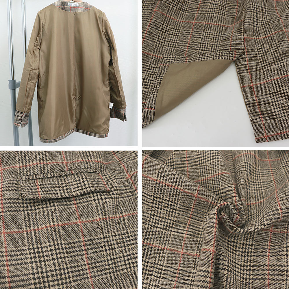 テーラードジャケット カジュアル ショートコート チェック柄 スーツジャケットミドル丈 ライトアウター 春秋冬 程よくゆとりのあるサイズ感でモードっぽさもありつつ、決め過ぎないヌケ感とリラックス感を演出 肌触りの良い着心地がらくちんなウールタッチ生地、高級感があってカジュアルにもフォーマルにも使えるマルチレディースアウター 本体素材:ポリエステル70%+綿30% 裏地素材:ポリエステル100% カラー:チェック柄 サイズ:M/L/XL [M]着丈:約73cm 肩幅:約37cm 袖丈:約61.5cm ゆき:約80cm 身幅:約52cm 胸囲:約104cm [L]着丈:約74cm 肩幅:約38cm 袖丈:約61.5cm ゆき:約80.5cm 身幅:約53cm 胸囲:約106cm [XL]着丈:約74cm 肩幅:約39cm 袖丈:約61.5cm ゆき:約81cm 身幅:約54cm 胸囲:約108cm 裏地:あり 伸縮性:なし 透け感:なし