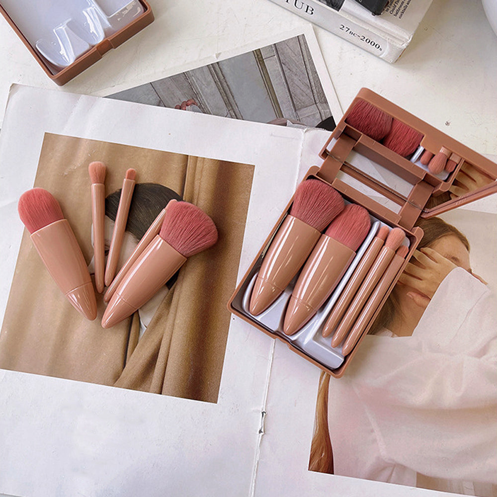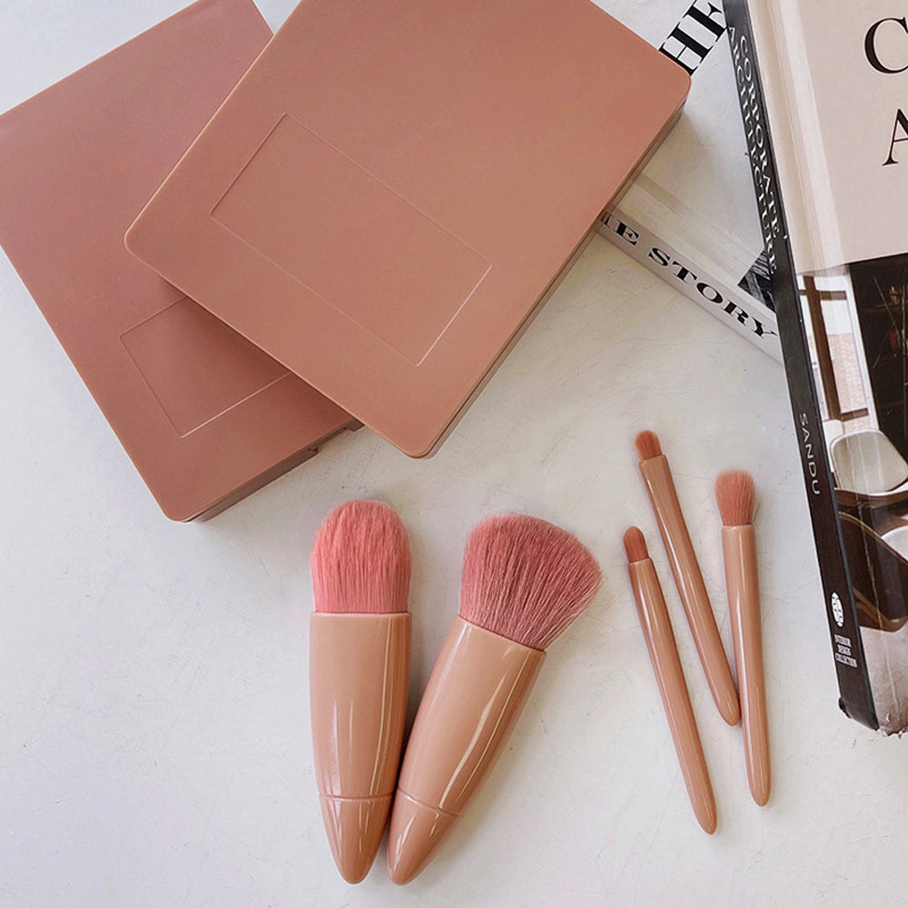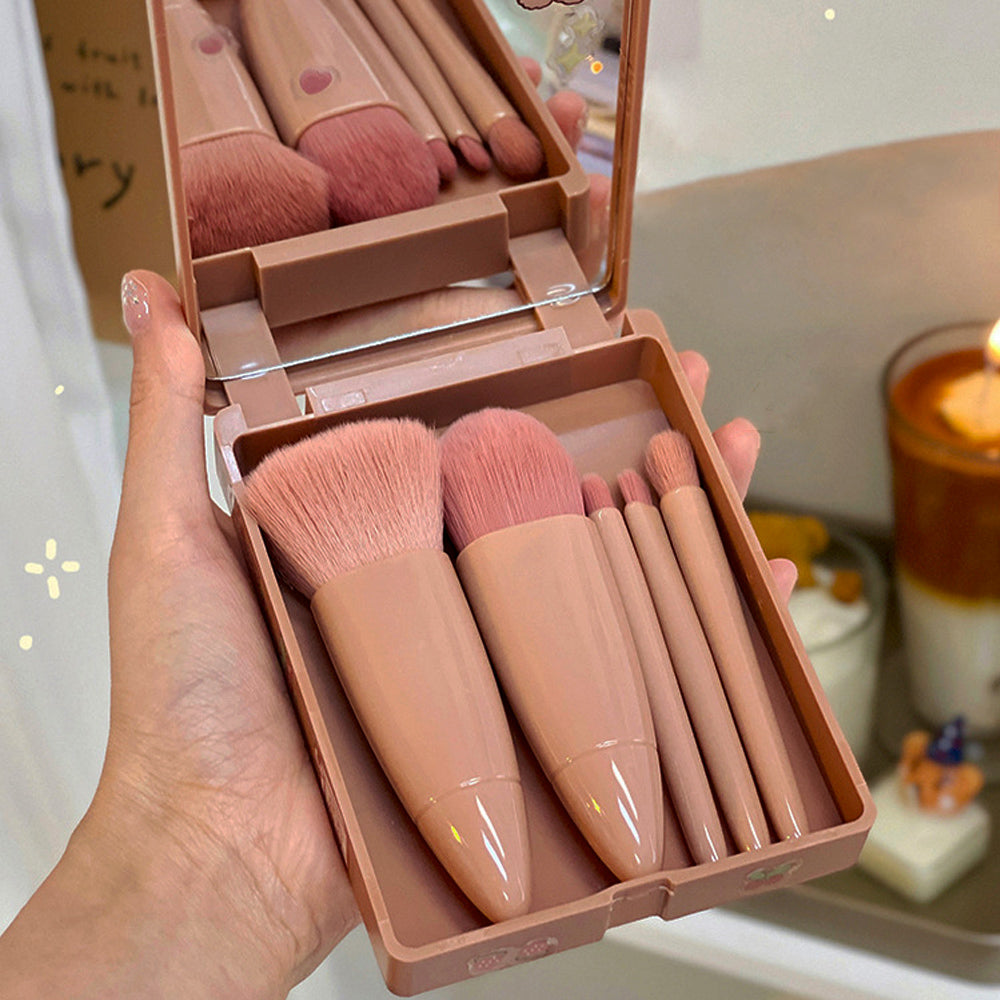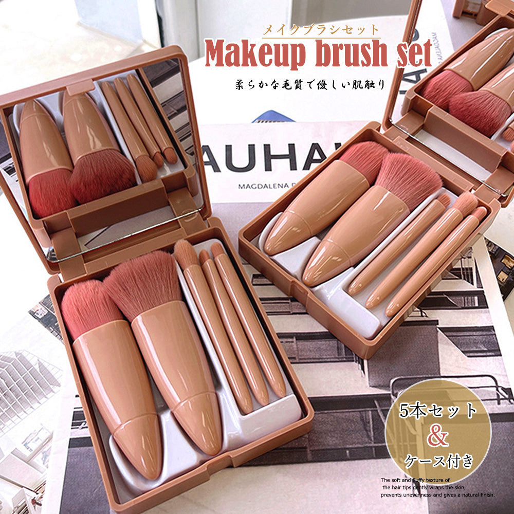 メイクブラシ5本セット 収納ケース付き 化粧ブラシセット 柔らかい ミラー付き 収納 化粧筆セット 携帯用