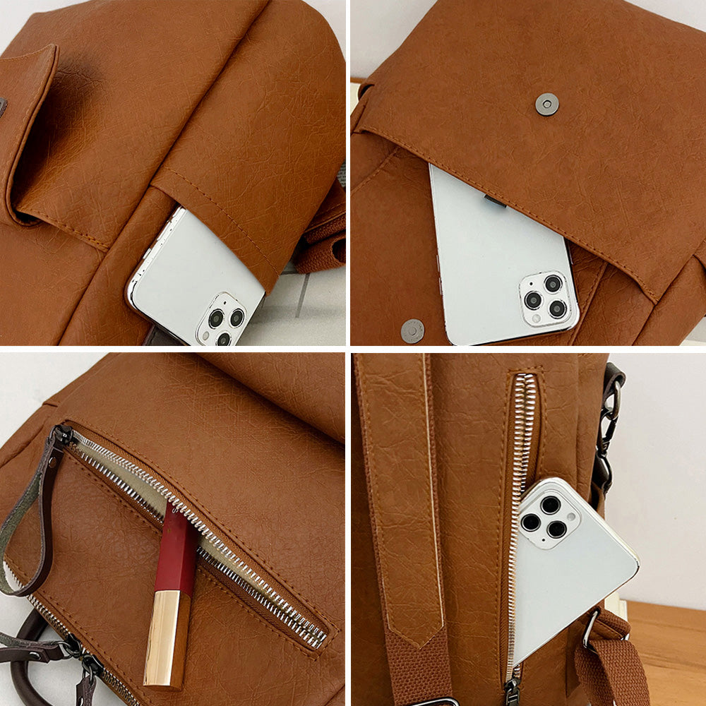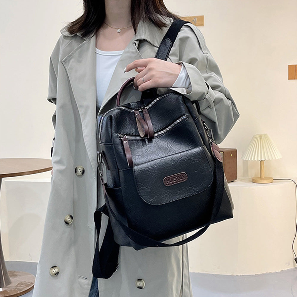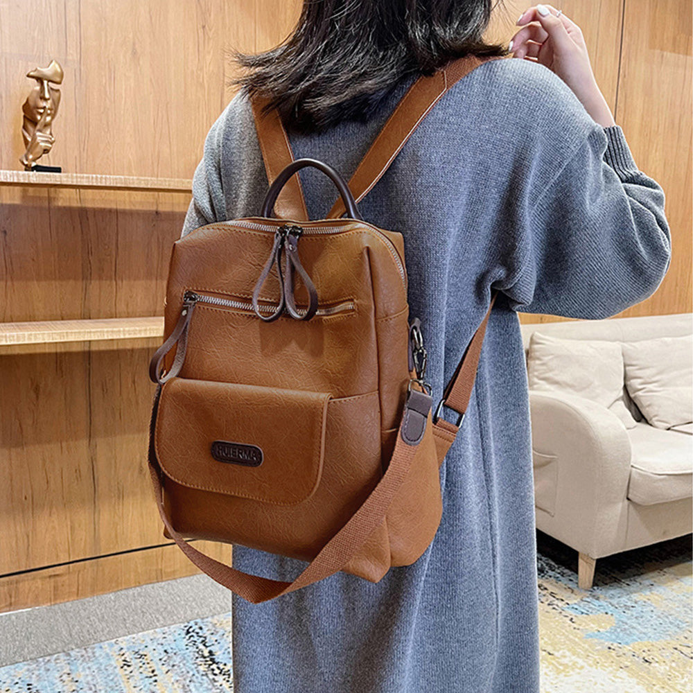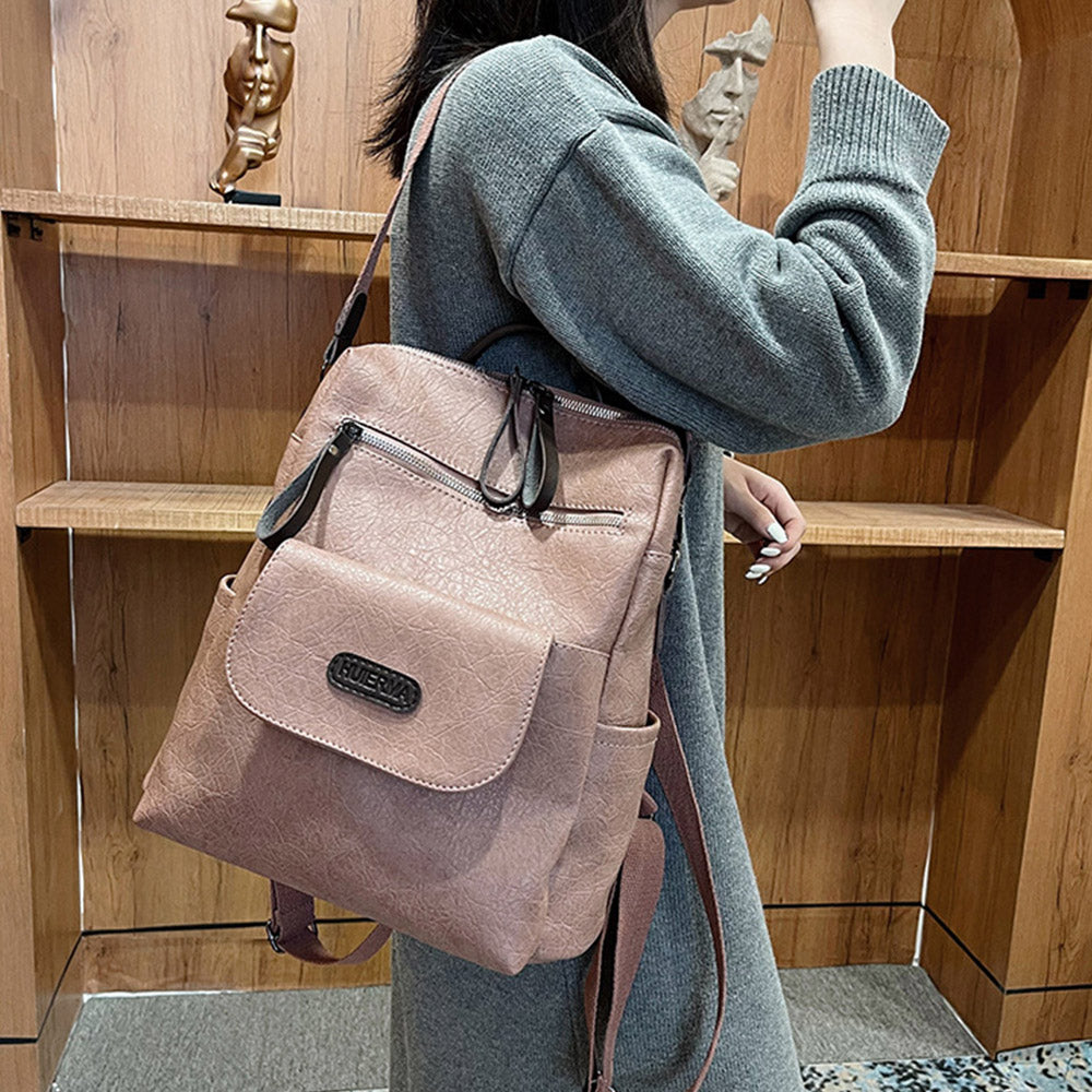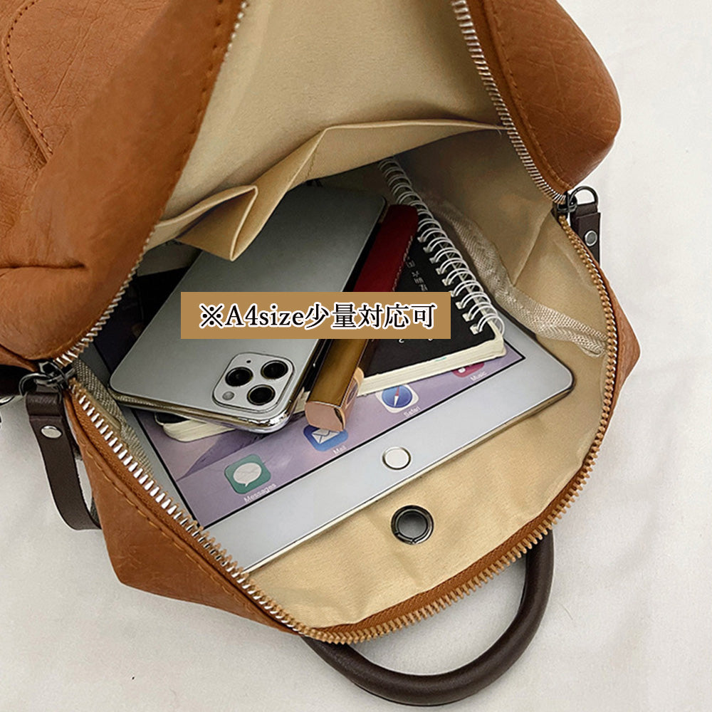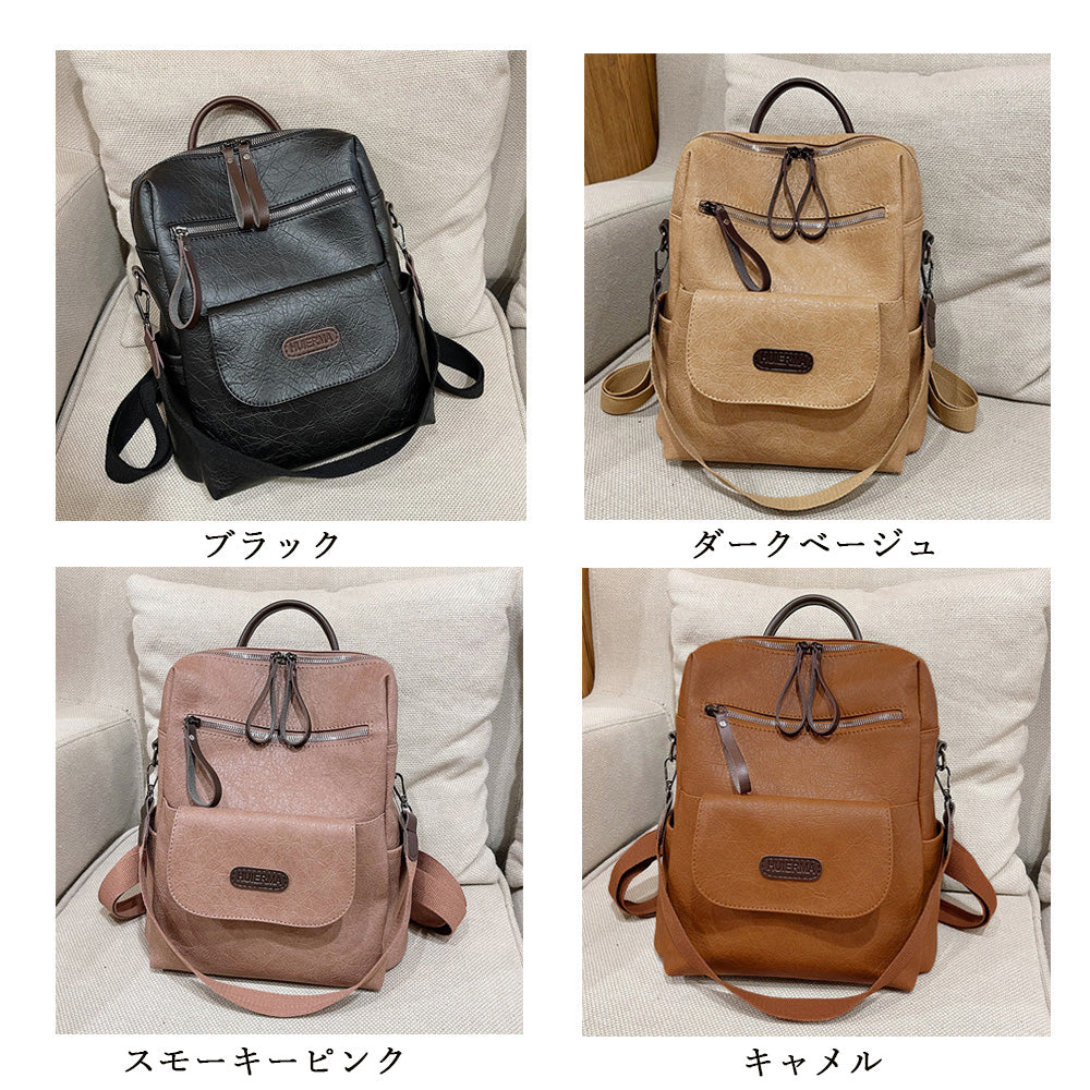 ポケット多いバッグ 2wayリュック新作 学生リュックレトロ 渋い光沢感のある牛シボ模様PU生地で仕上げたマットな質感のレトロチックなスクエアリュック 少量なA4ファイルを収納可能なメインポケットにフロントポケット、バックにもサイドにも内側にもポケットがあって荷物の多い方にピッタリの大収納大容量デザイン 両肩で背負ってもワンショルダーで背負っても手提げてもOKなマルチ仕様、さりげなくイヤホンホールも取り付けてあって通勤通学路でも音楽を楽しんで気分上々 素材:合成皮革+ポリエステル カラー:ブラック/ダークベージュ/キャメル/スモーキーピンク サイズ: 高さ:約34cm 底横幅:約29cm マチ:約13cm 持ち手:約20cm(調節不可、取り外し不可) 肩掛けショルダー:約54cm(調節不可、取り外し可) リュックショルダー:約47-93cm(調節可、取り外し不可) 重さ:約587g 裏地:あり 内ポケット:あり