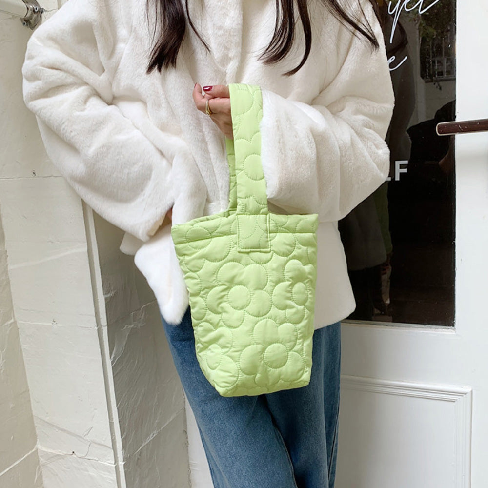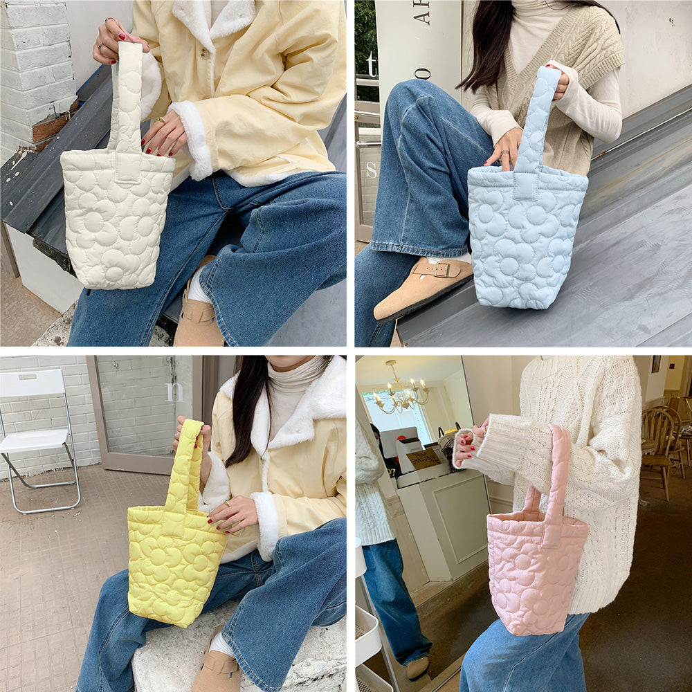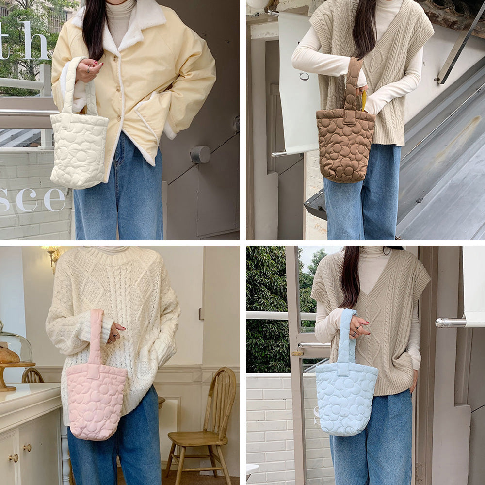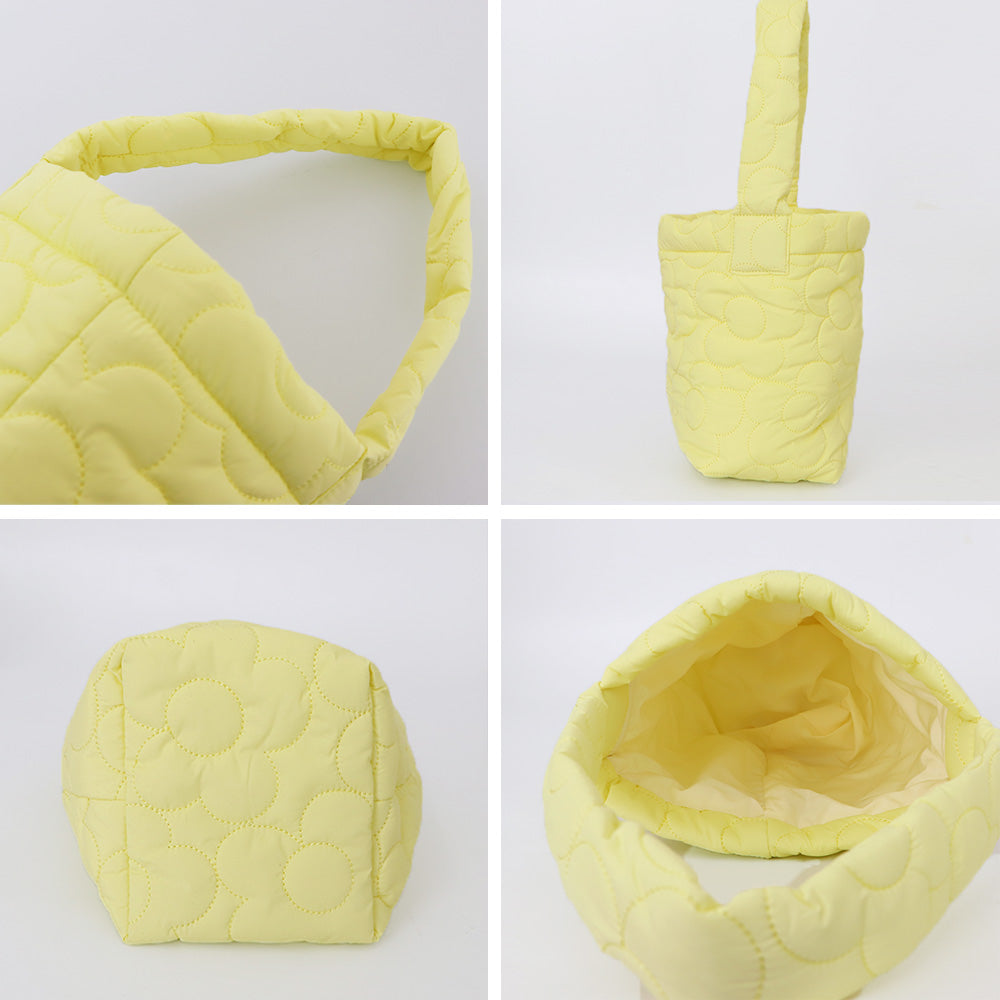 ミニトートバッグ パステルカラー キルティングトート お散歩バッグ 花柄ステッチ バケツバッグ 縦型