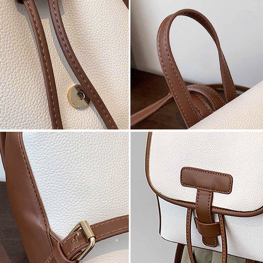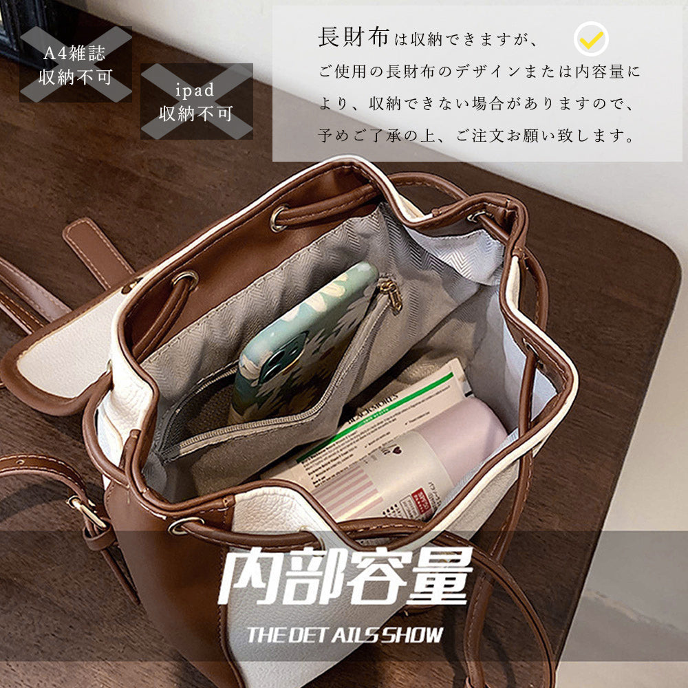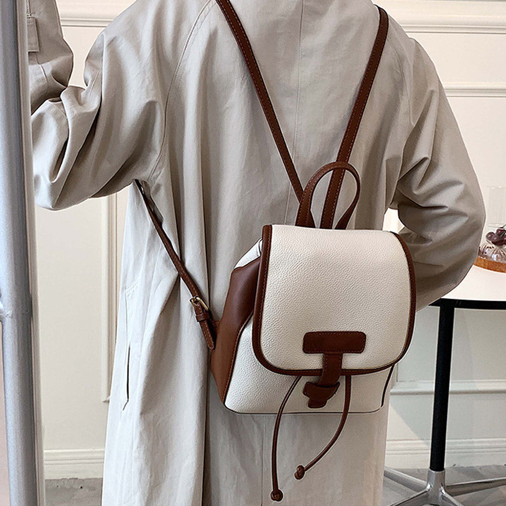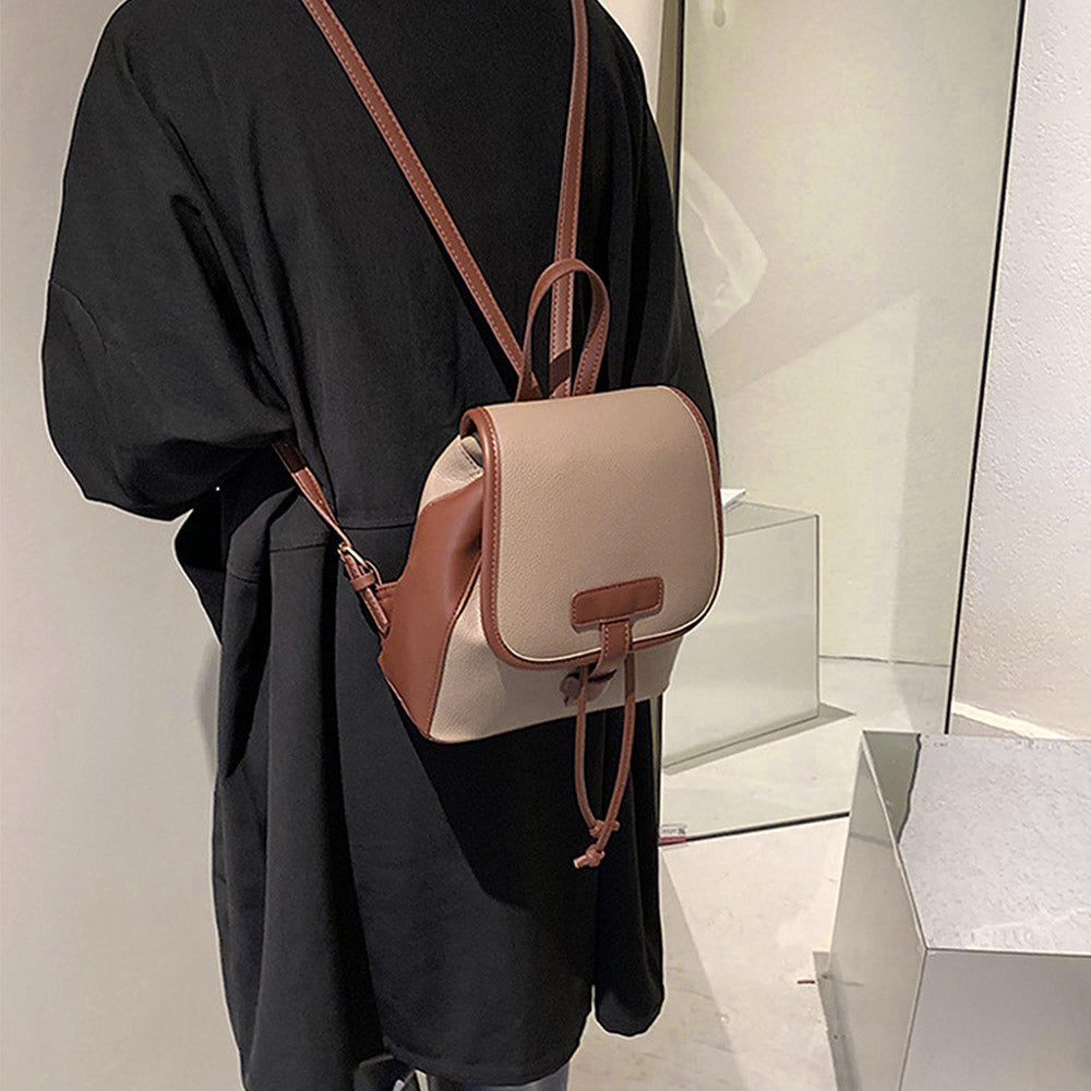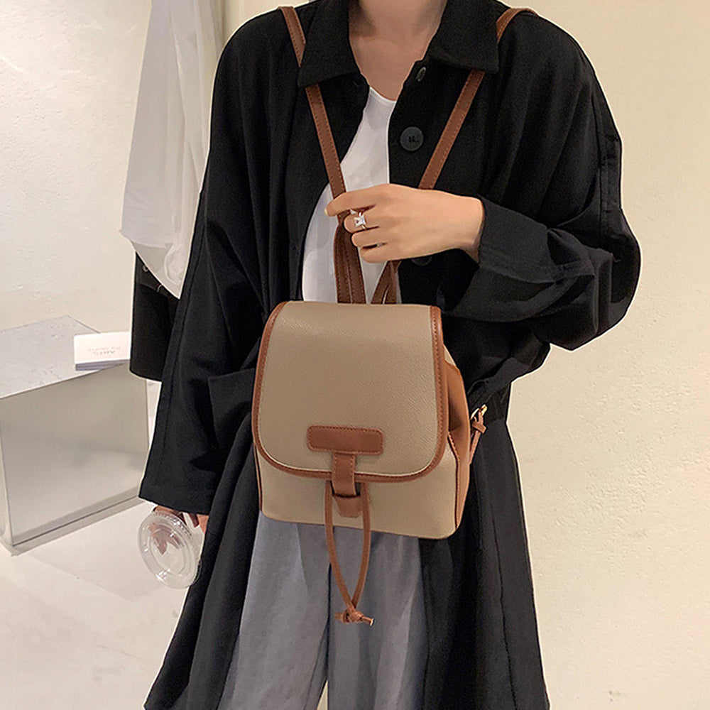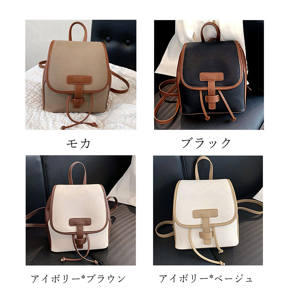 カジュアル おしゃれ リュックサック バイカラー PUレザー バックパック デイパック 小さめ 背負い かばんカバン 手軽にトレンドのカジュアルMIXが実現するリュックサックです リュック紐はアジャスター付きなので、お好みで長さ調節が可能です コーデの締め色に、きれいめアイテムのハズシ役にもなります 素材:合成皮革+ポリエステル カラー:ブラック/モカ/アイボリー*ブラウン/アイボリー*ベージュ サイズ: 高さ:約21cm 底横幅:約21cm マチ:約10cm 持ち手:約24cm(調節不可、取り外し不可) ショルダー:約68-86cm(調節可、取り外し不可) 重さ:約518g 裏地:あり 内ポケット:あり