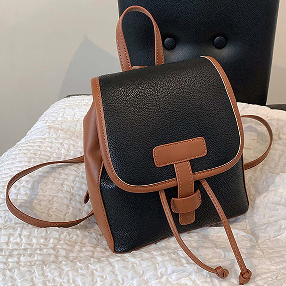 リュック バイカラー PUレザー バックパック デイパック 小さめ 背負い シンプル 旅行バッグ ミニリュック 黒