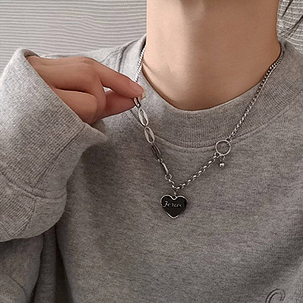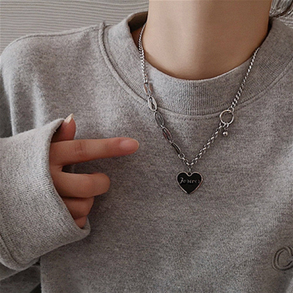シンプル チョーカーネックレス ハートペンダント おしゃれ アシンメトリー 首飾り きれいめ 春夏秋冬 チェーンチョーカー 可愛いアクセサリー シルバージュエリー 英字が刻印されたハートプレートがとても洒落な風チェーンネックレス 左右非対称のチェーンはこなれ感が増す スタイルやシーズンに問わず、デイリーにも最適なアイテム 素材:合金 カラー:シルバー 首回り:約44-49cm(調節可能) アジャスター:約5cm ※包装に関しての注意点:こちらの商品は、化粧箱は付いていませんが、商品に傷付かないよう簡易包装で発送とさせていただきます。