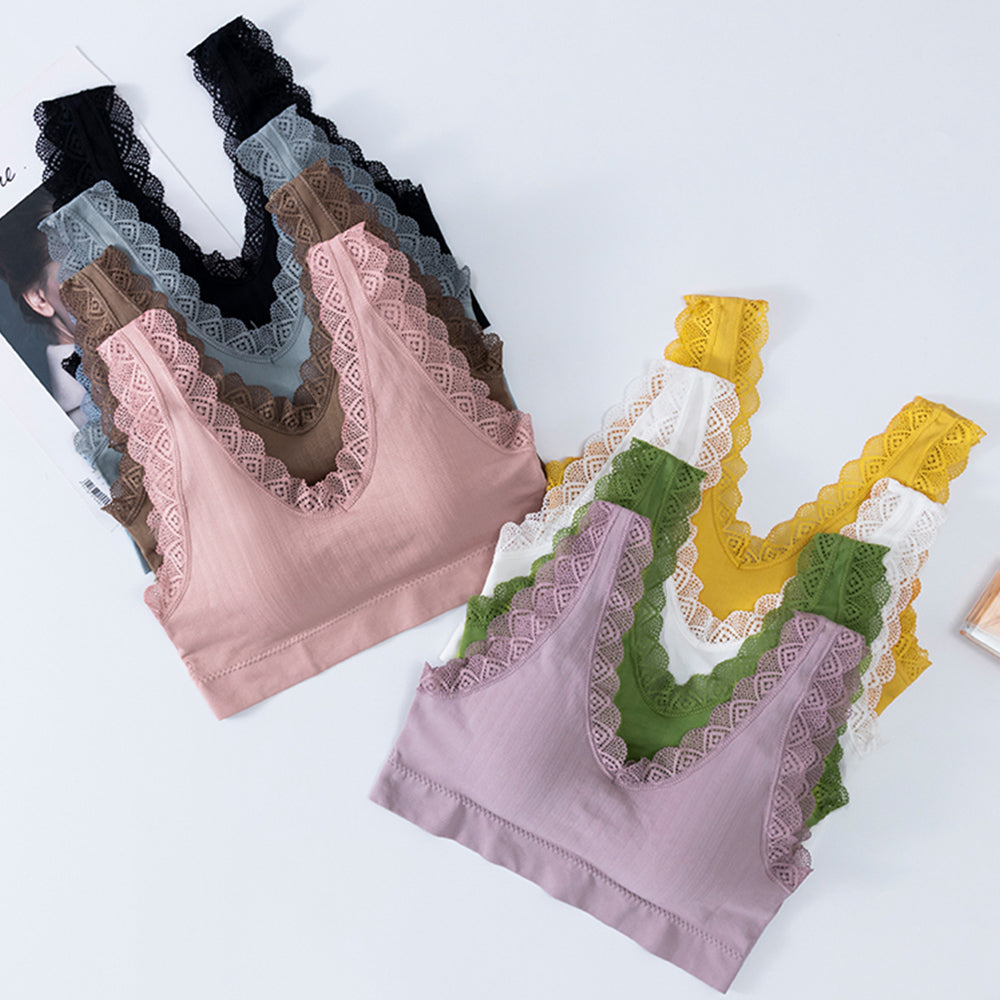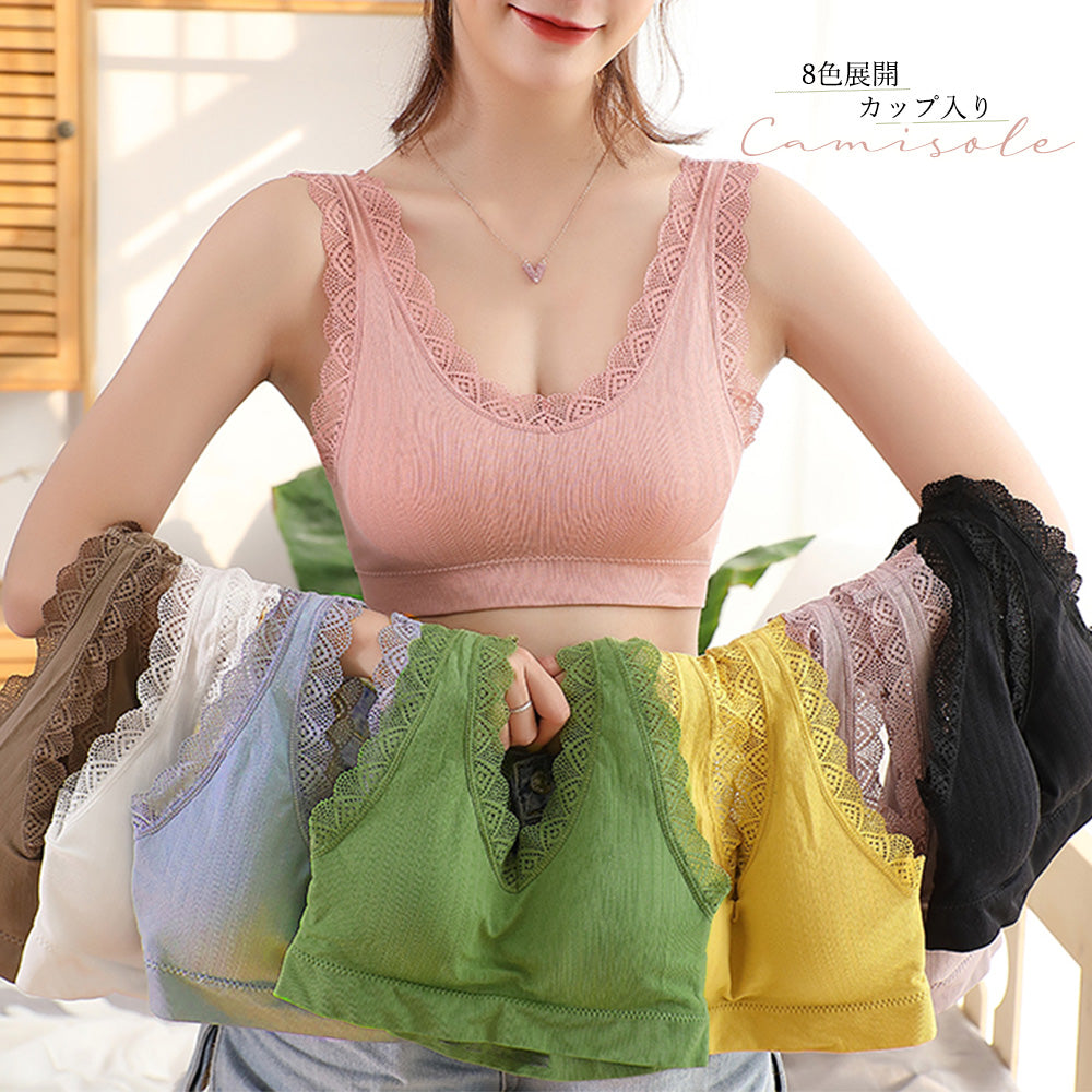 ブラ カップ入り ハーフキャミ リブ キャミソール レース ブラトップ ノンワイヤー ハーフトップ フィット感 8色