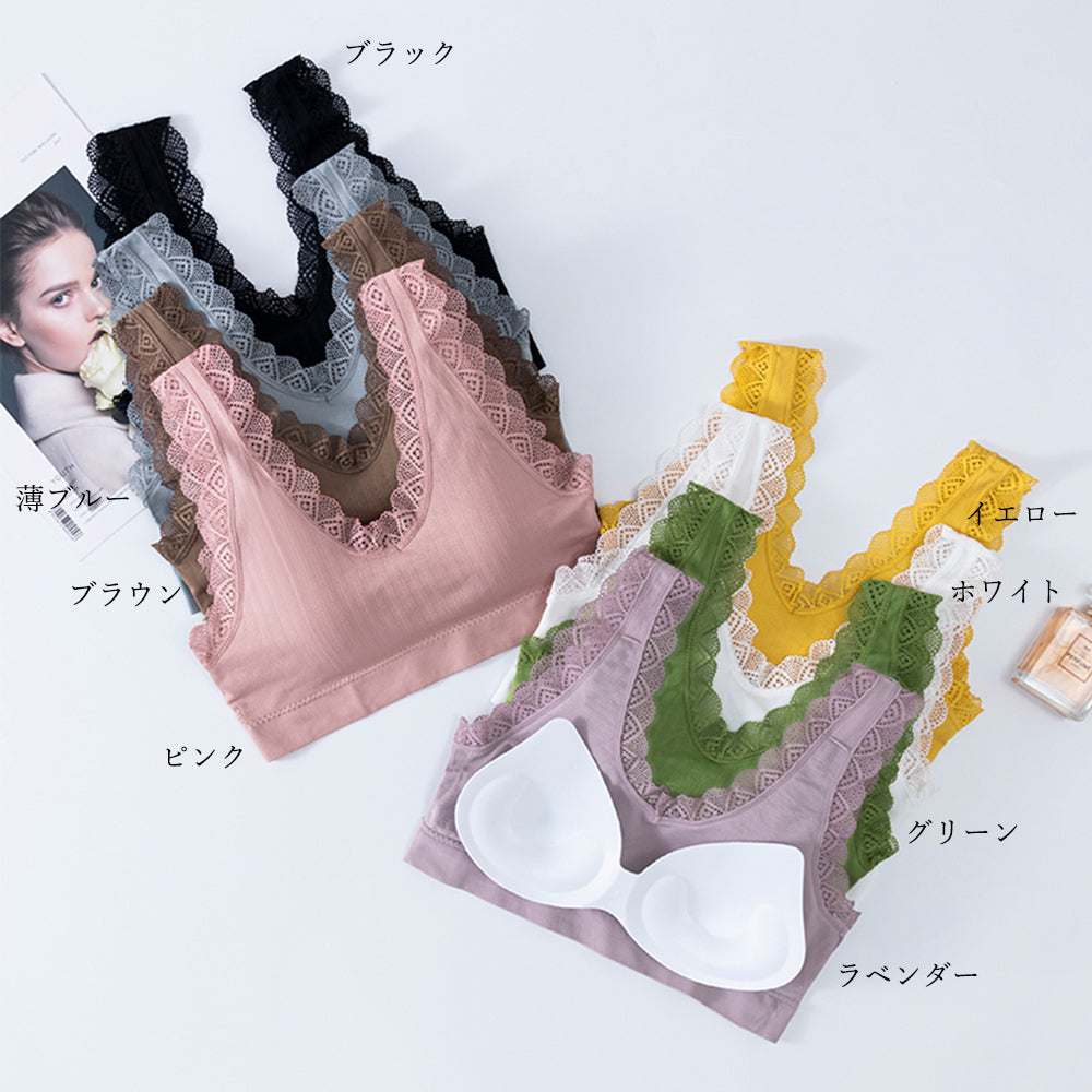 キャミソール インナー レースブラトップ ノンワイヤー レディース ブラ ハーフトップ フィット感 セクシー 8色展開 ヨガブラ 柔らかい 昼夜兼用 Vネック スポーツブラ 夏 伸縮性に優れた生地と幅広のアンダーゴムで叶えた、柔らかなフィット感のノンワイヤーレースブラトップです バストを優しく包み込むソフトカップ入り、ノンワイヤーで締め付け感なしです 取り外し可能のパット入り、シーンやお好みに応じてパッドを取り外しできるところも高ポイントになります 素材:ポリエステル92%+ポリウレタン8% カラー:ブラック/ホワイト/薄ブルー/ピンク/ブラウン/ラベンダー/グリーン/イエロー サイズ:ワンサイズ 着丈:約28cm トップバスト:約62-88cm アンダーバスト:約58-80cm ワイヤー:なし カップ:あり パッド挿入可(取り外し可能) 裏地:カップ部分のみあり 伸縮性:あり 透け感:ホワイトのみ若干あり