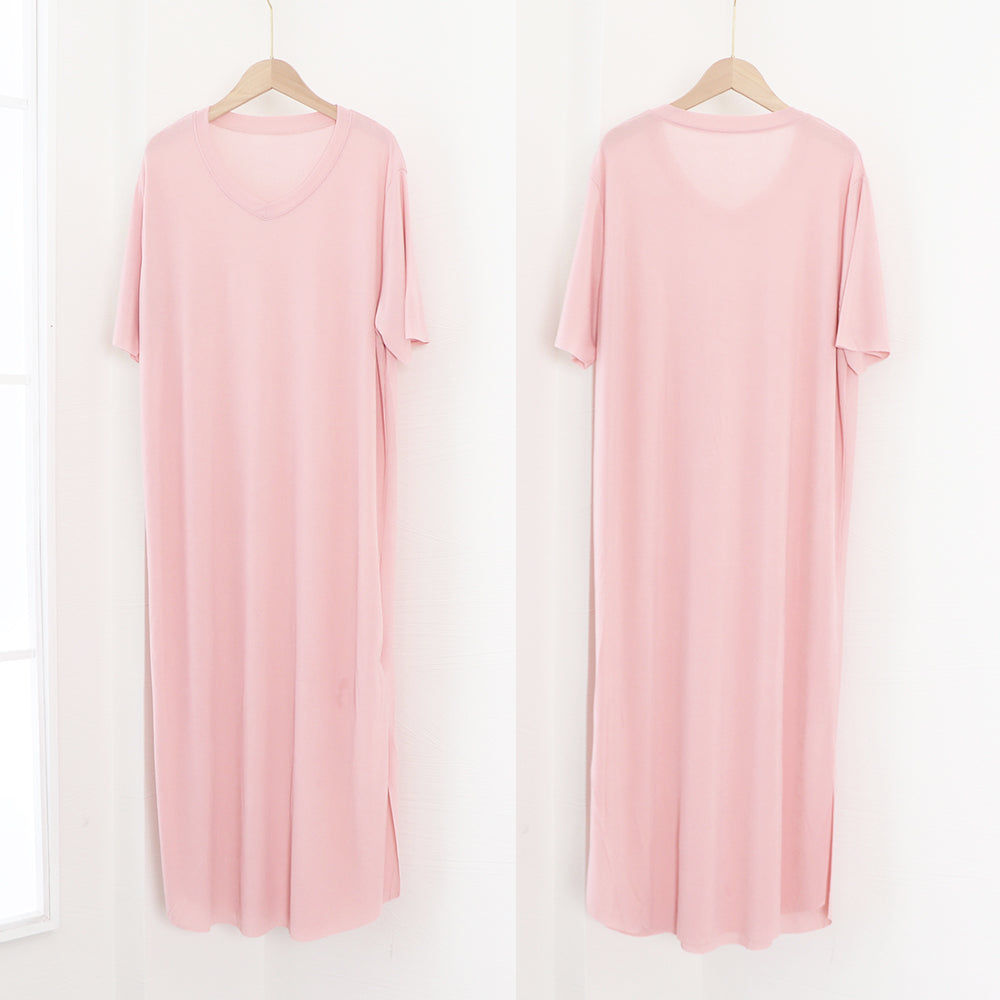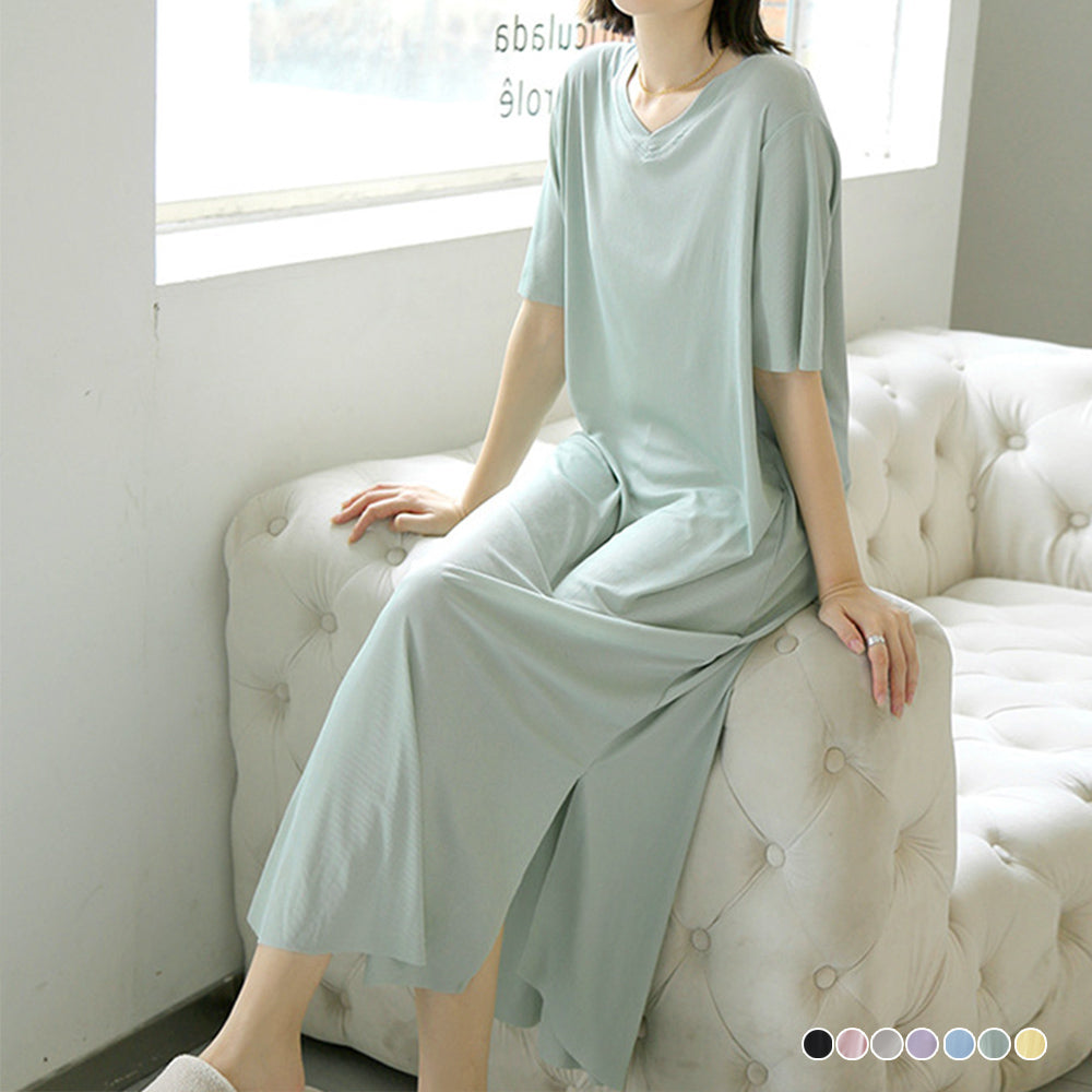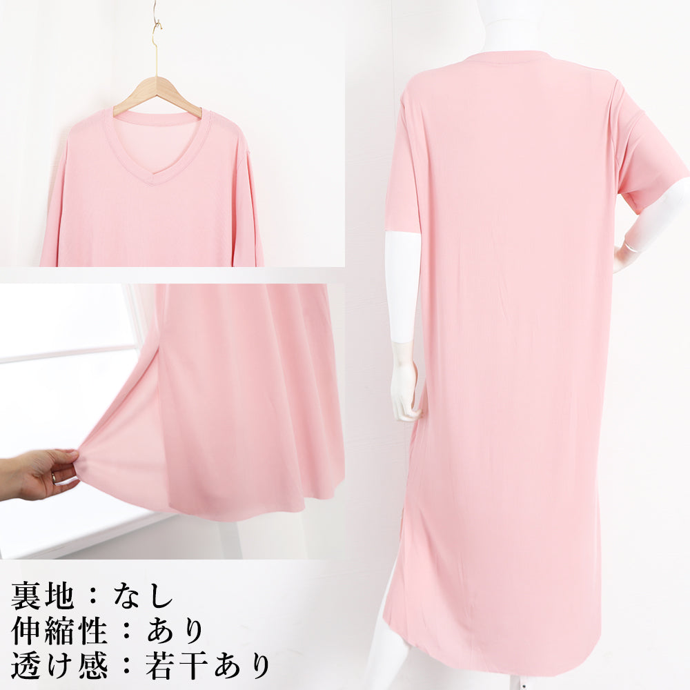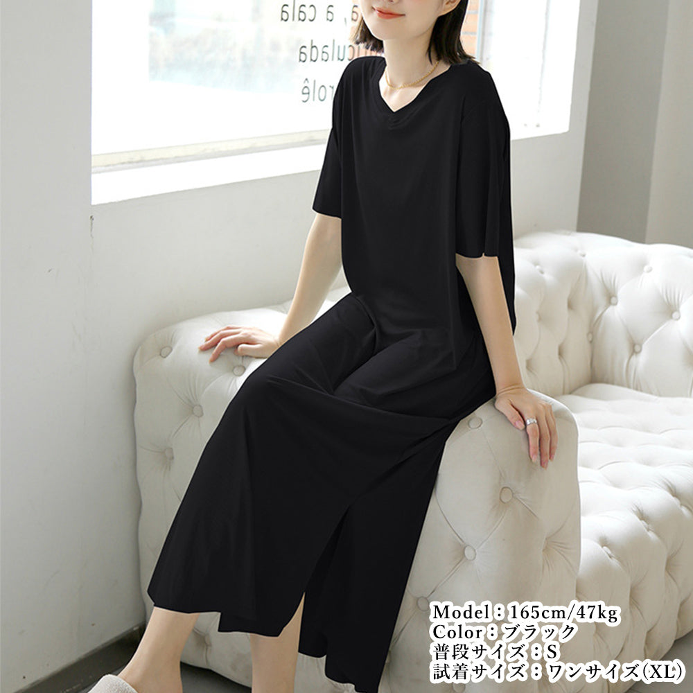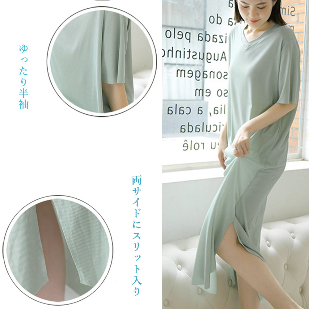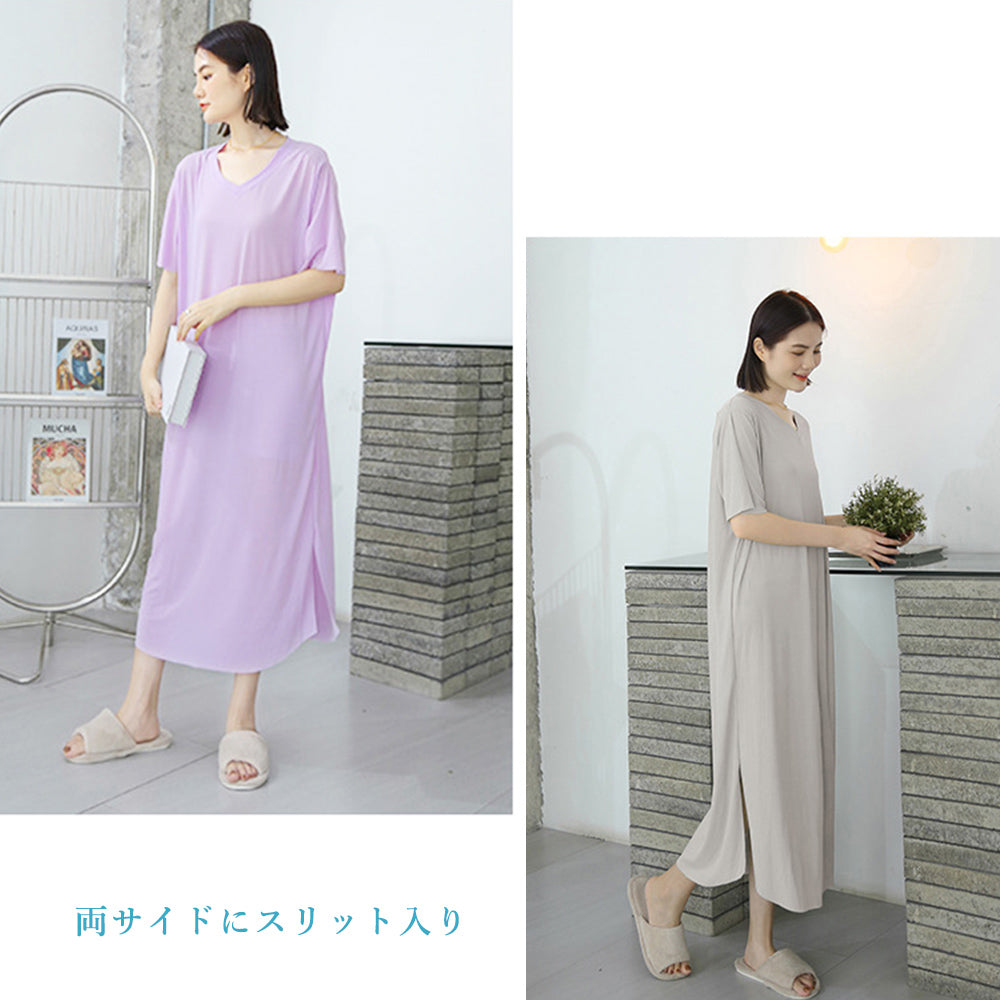 ワンピース Tシャツ ロングワンピ 涼しい ルームウェア 体型カバー ひんやり 夏パジャマ 薄手 部屋着 細めリブ 半袖 スリット