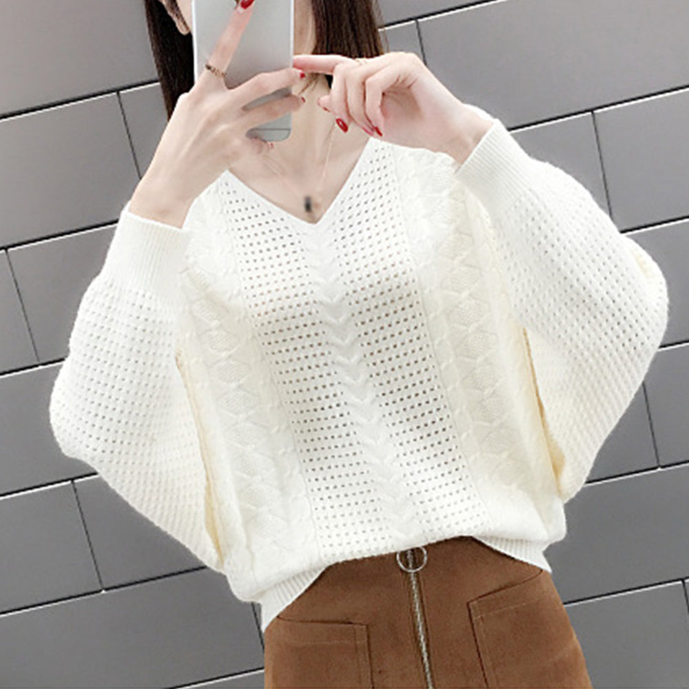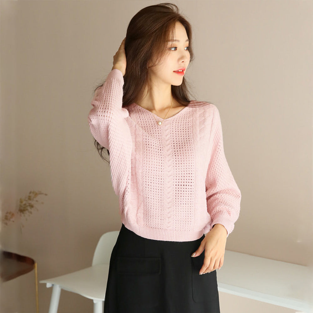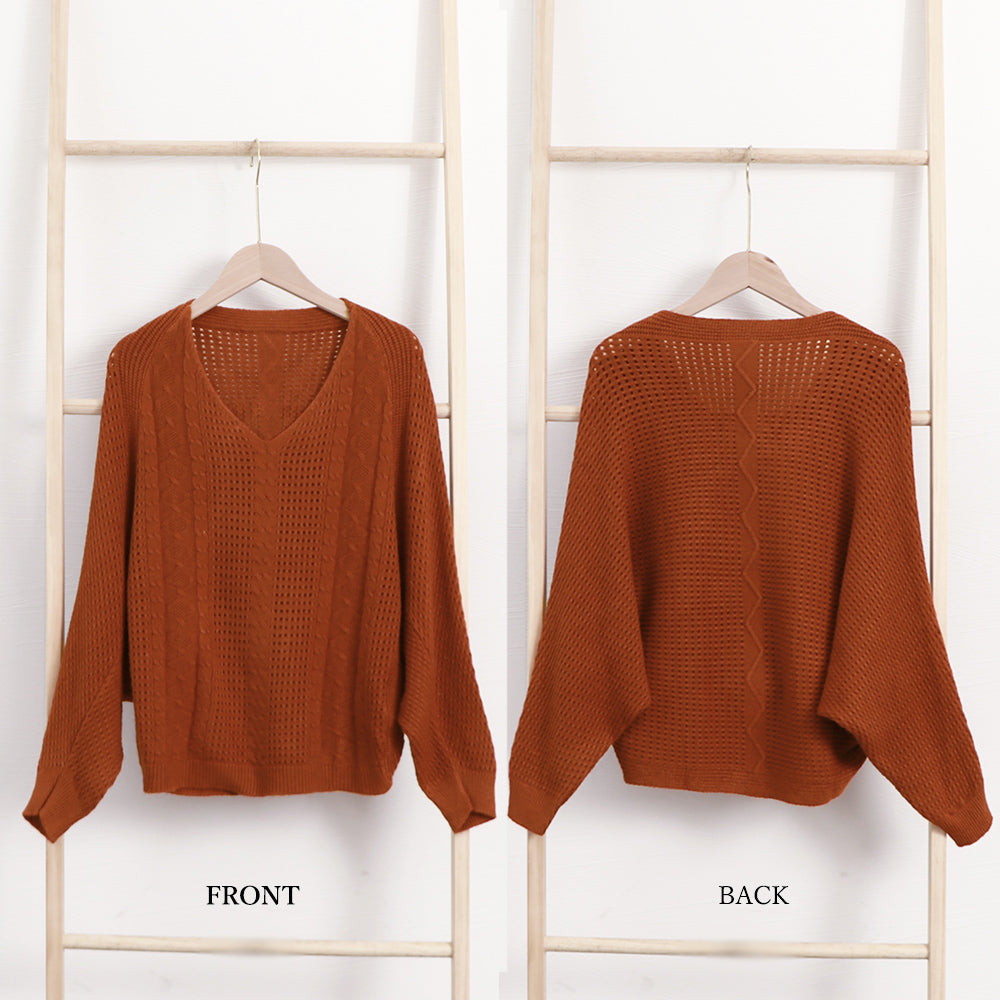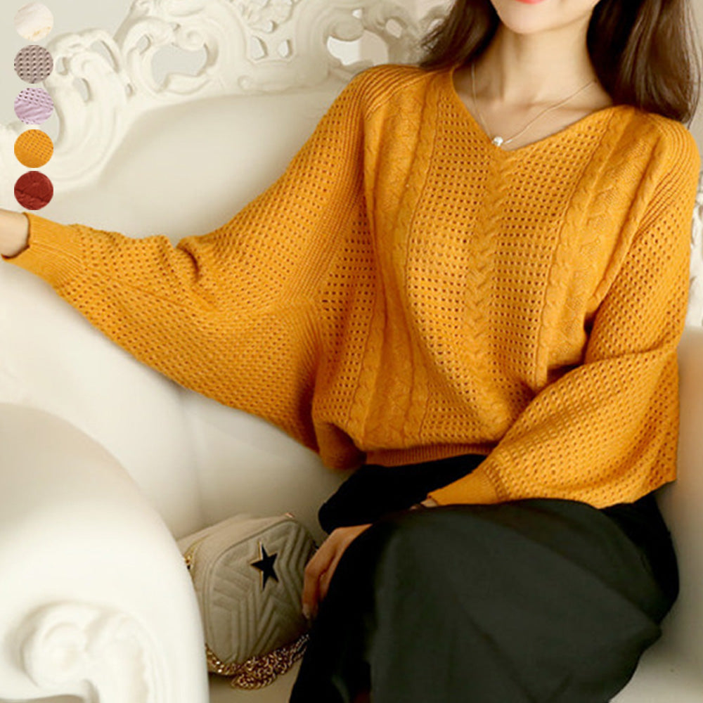 ニットトップス ドルマンニットニット 透かし編み Vネック 柔らかい 着やせ ニットソー ベーシック