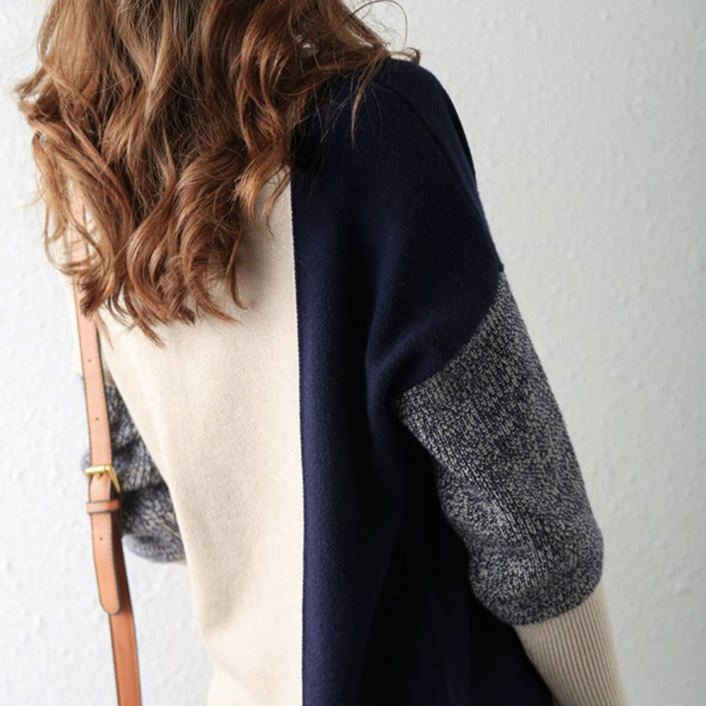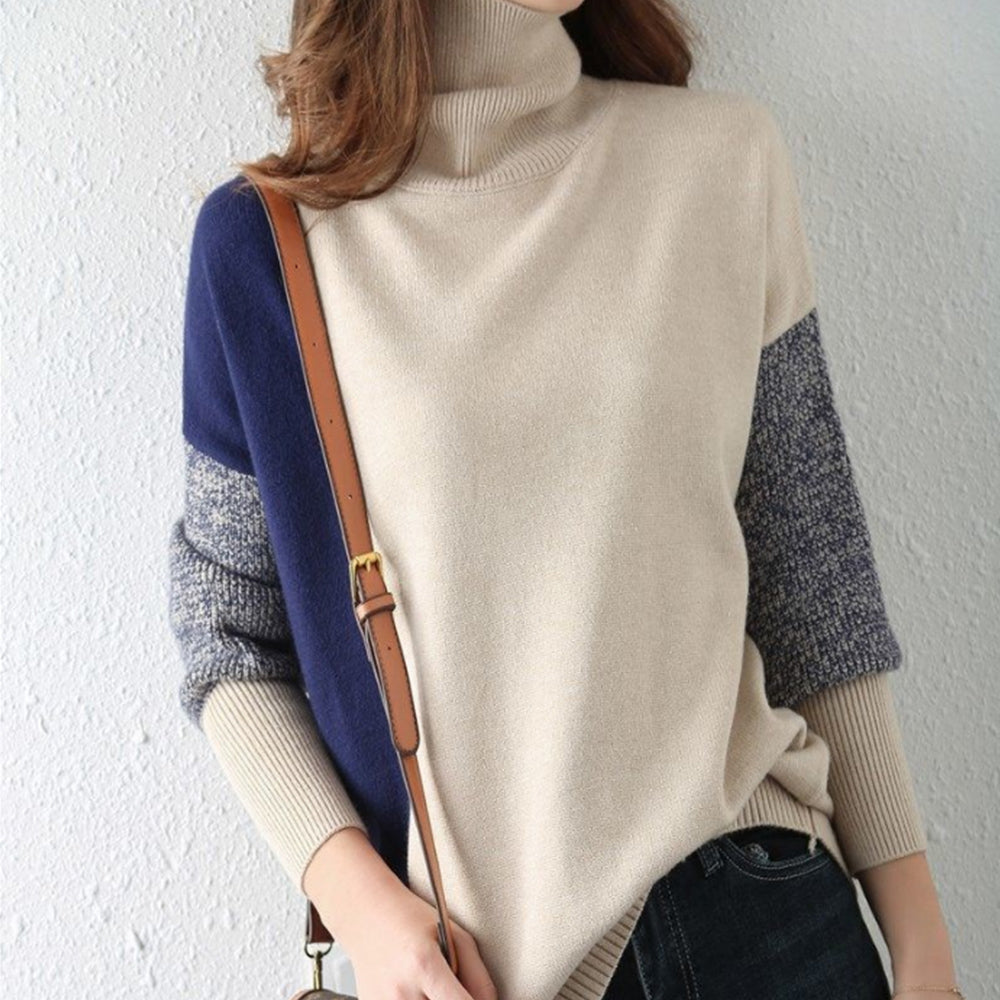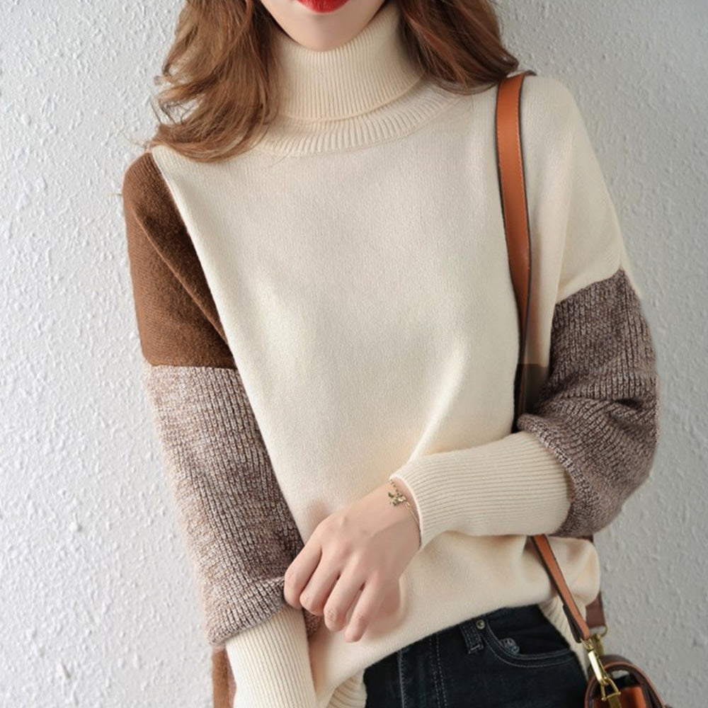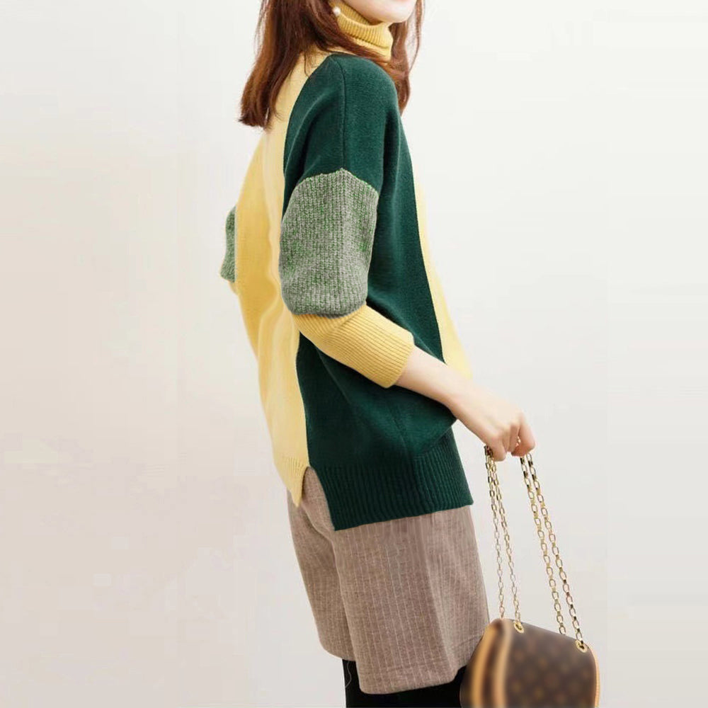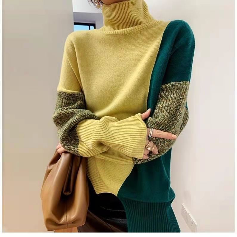 配色 タートルネック ニット レディース 秋冬 ハイネック 長袖ニットトップス スリット入り ニットセーター