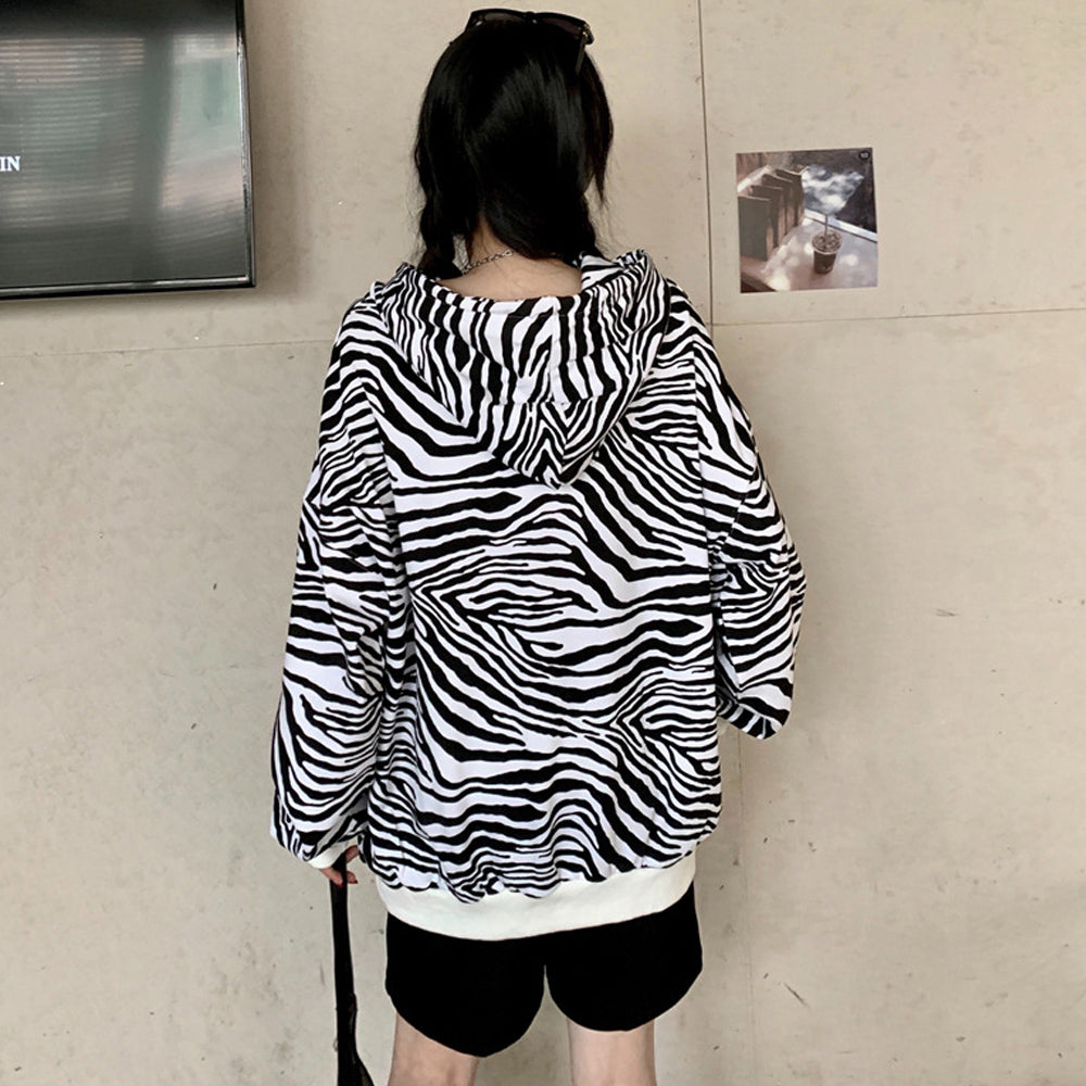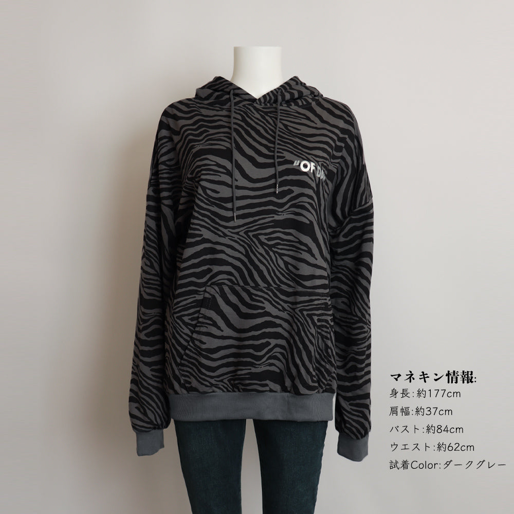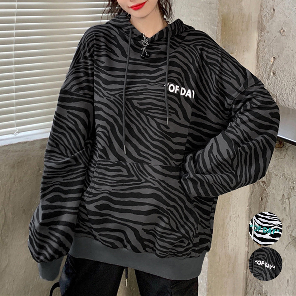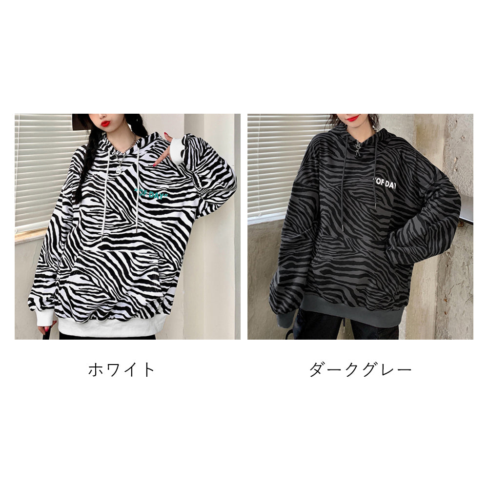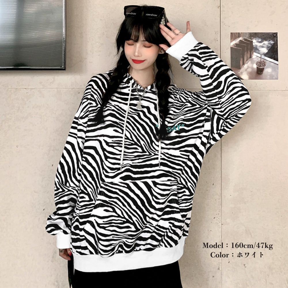 長袖 パーカー レディース ゼブラ柄 薄手トレーナー ロゴ入りトップス 体型カバー スウェット プルオーバー