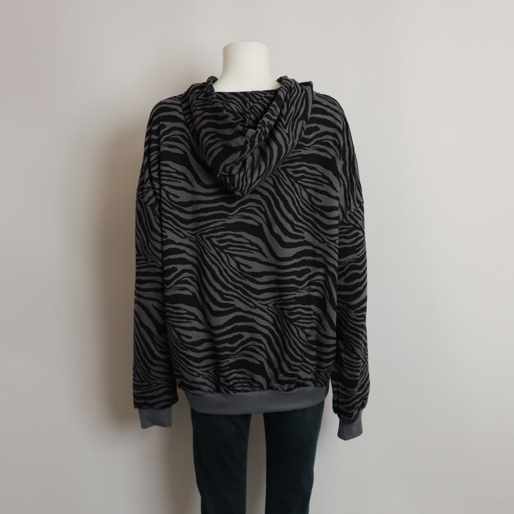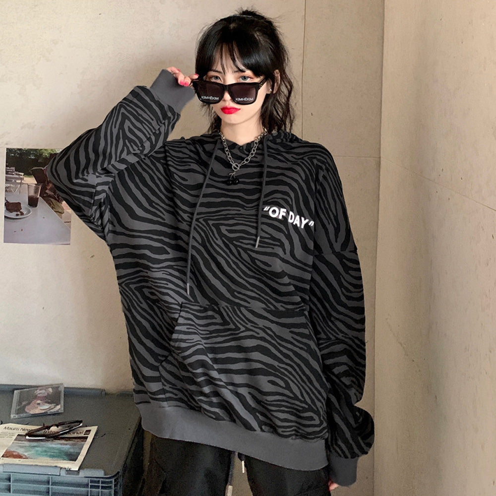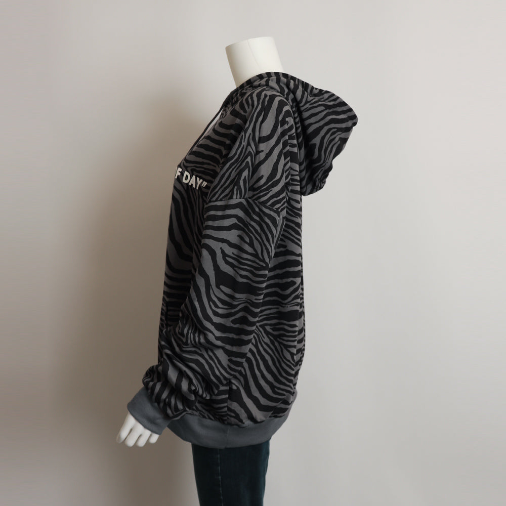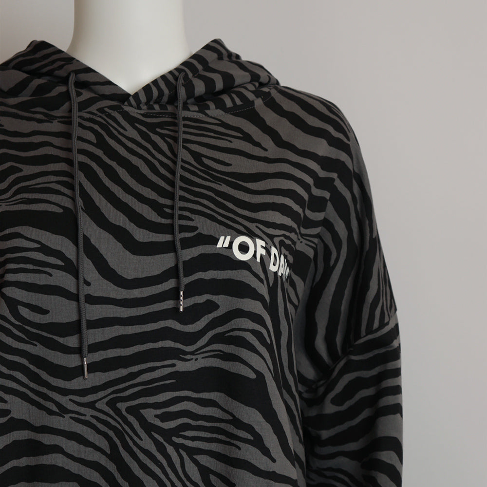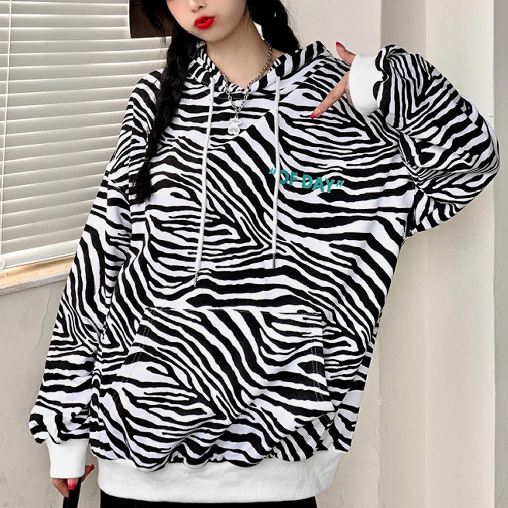 長袖 パーカー レディース ゼブラ柄 薄手トレーナー ロゴ入りトップス 体型カバー スウェット プルオーバー