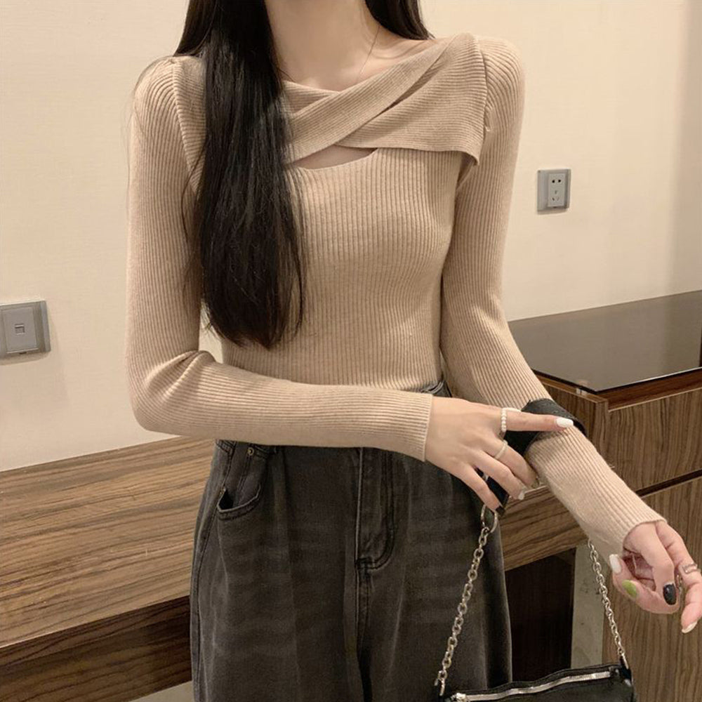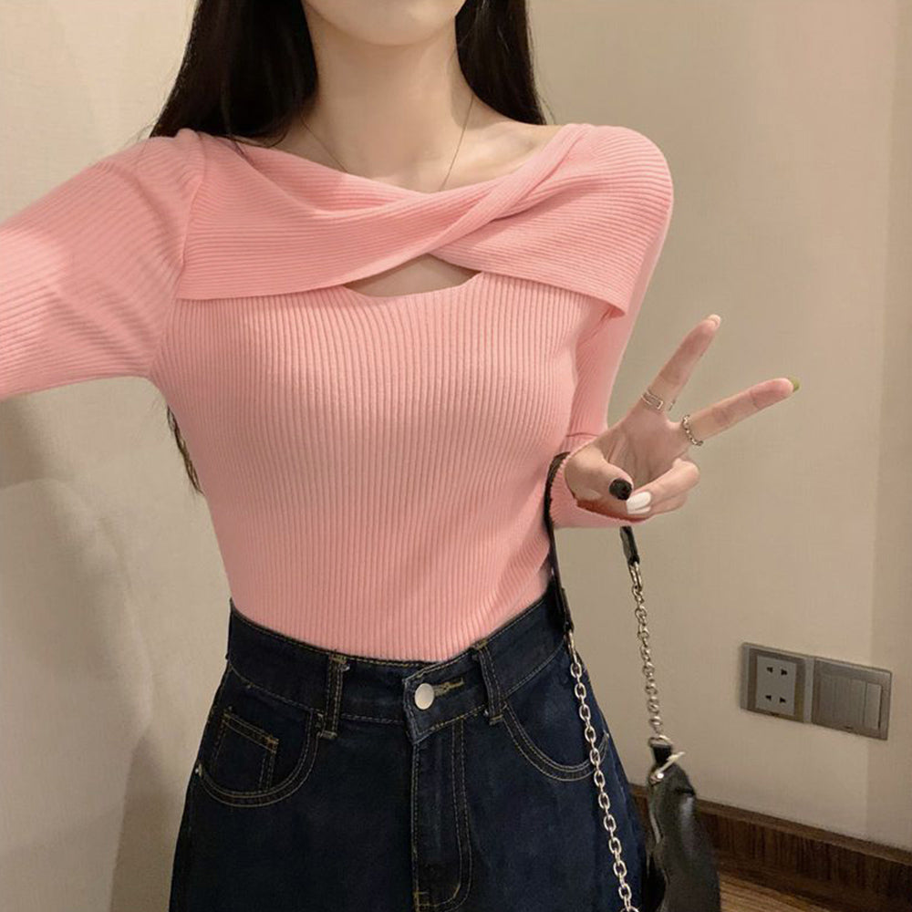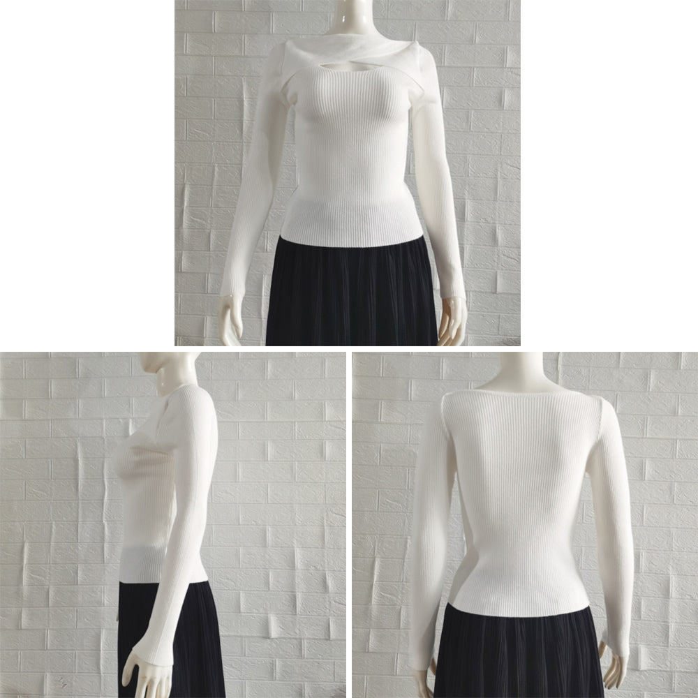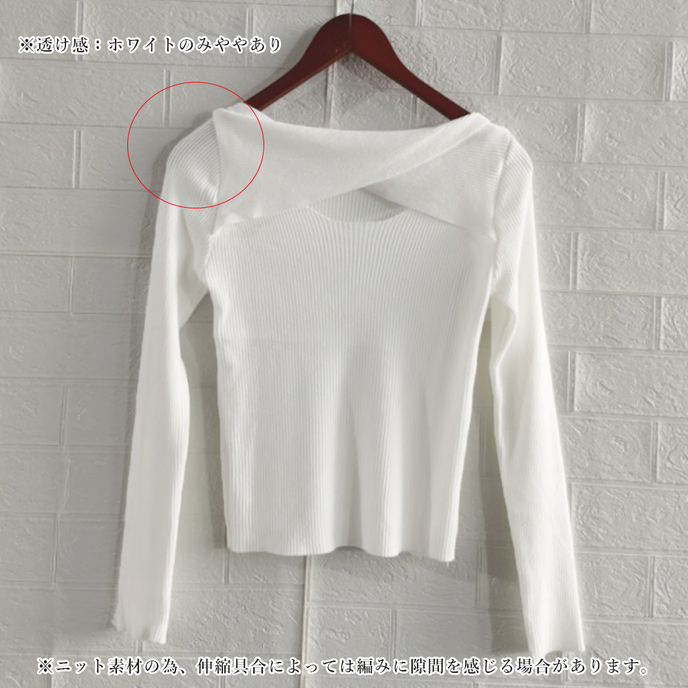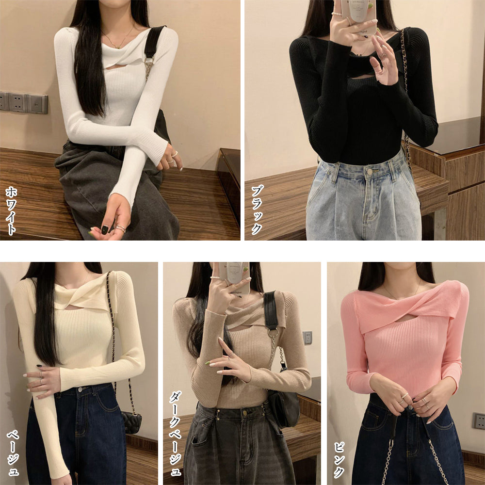 ツイスト リブニットトップス レディース ベーシックニット 肌見せ ニットウェア ニットインナー 着やせ