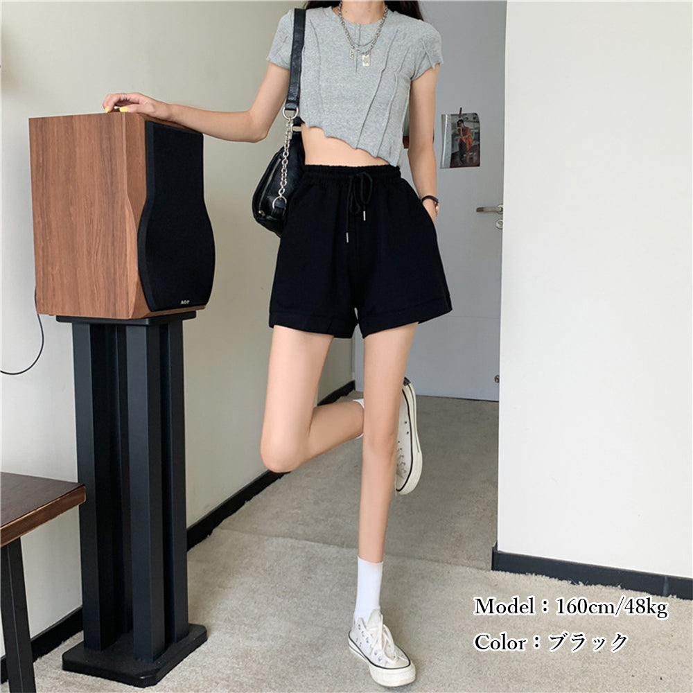 ショートパンツ スウェット レディース 春夏 ウエストゴム ホットパンツ ハイウエスト ミニ丈