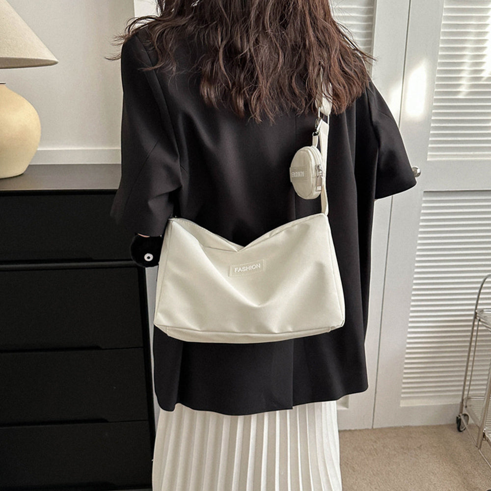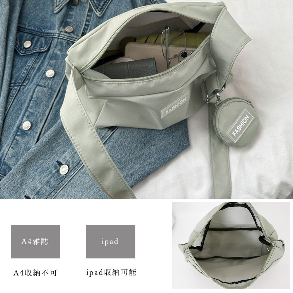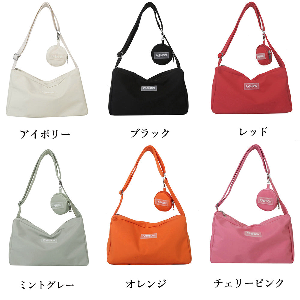 可愛い メッセンジャーバッグ 軽量 斜めがけ カジュアルカバン 通勤通学 おしゃれ ナイロンバッグ コインケース付き スポーツバッグ軽い 肩掛けかばん大容量 ワンショルダー白黒 丈夫なナイロン素材で仕上げた軽量で実用的な大容量ショルダーバッグです ショルダーストラップは長さ調節可能で、お好みに合わせてカスタマイズすることができます カジュアルなデイリーユースから、旅行や外出先での使用まで幅広いシーンで活躍します 素材:ナイロン カラー:ブラック/アイボリー/ミントグレー/チェリーピンク/レッド/オレンジ サイズ: 高さ:約17cm 底横幅:約25cm マチ:約13cm ショルダー:約61-100cm(調節可能、取り外し不可) ポーチ直径:約8cm 重さ:約136g 裏地:なし 内ポケット:なし