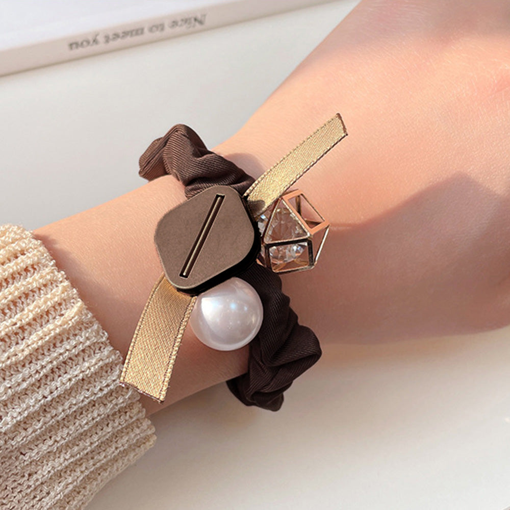チャーム付きヘアゴム おしゃれ 20代30代40代 ビジュー キラキラ髪留め髪飾り ヘアアレンジ お団子 大人可愛い雑貨 パール ヘアアクセ 二次会女子会結婚式 夏 チャームアクセサリーがたくさん付いたかわいいヘアゴム アップスタイルでガーリーに、低めの位置でまとめて大人っぽく、少しのアレンジで違った雰囲気を楽しめる ベーシックなカラー展開でコーデに合わせやすいのもポイント 素材:ポリエステル+フェイクパール カラー:ブラック/アイボリー/ブラウン ゴム直径:約5.5cm ※包装に関しての注意点:こちらの商品は、化粧箱は付いていませんが、商品に傷付かないよう簡易包装で発送とさせていただきます。