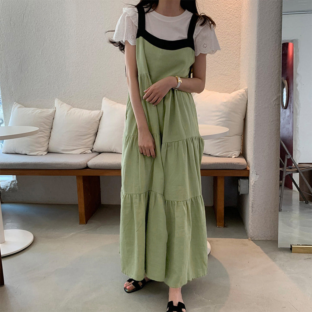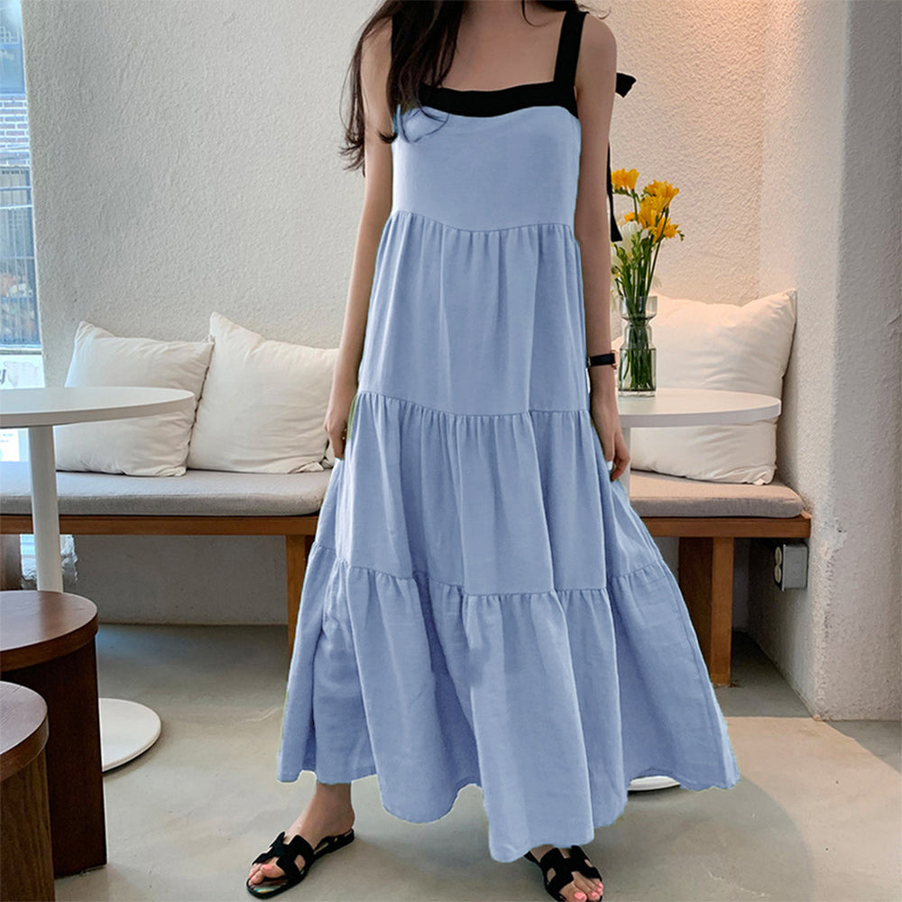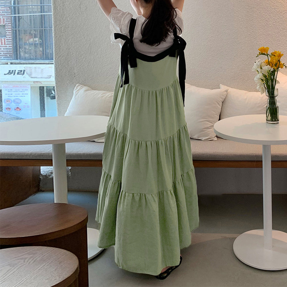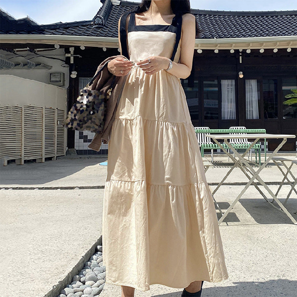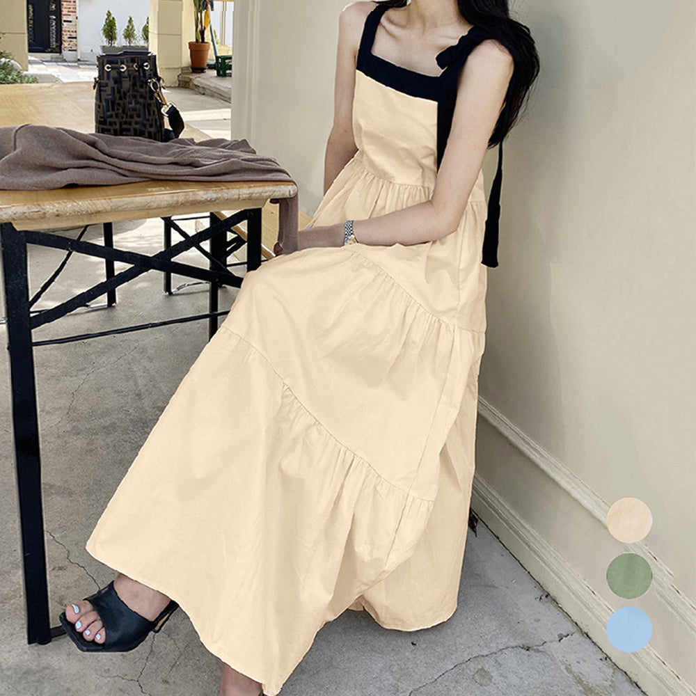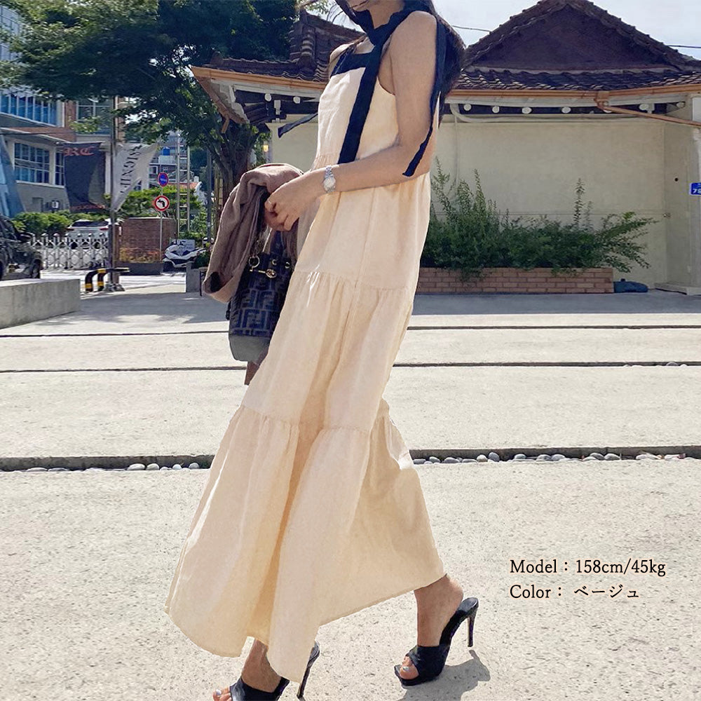 ティアードワンピース ロングワンピ キャミワンピース ノースリーブワンピース レイヤード 重ね着
