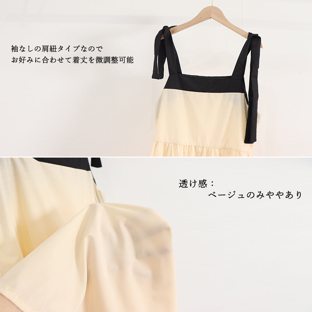 キャミワンピース ノースリーブワンピース レイヤード重ね着 きれいめカジュアル マキシ丈サマーワンピ お洒落 体型カバー 着やせワンピース夏 ゆったり大人ワンピ ナチュラル秋ワンピ クシュっとしたたっぷりのタック入りでふんわりボリューミーなマキシ丈ティアードワンピース ゆったりシルエット&縦ラインですっきり華奢魅せ、体型カバーしつつ締め付け感のないストレスフリーな着心地が実現 袖なしの肩紐タイプなのでお好みに合わせて着丈を微調整可能、そのまま着てもトップスレイヤードしてもOKな着回しアイテム 素材:ポリエステル70%+綿30% カラー:ベージュ/アップルグリーン/ライトブルー サイズ:ワンサイズ 着丈:約106cm 身幅:約44cm 胸囲:約88cm ウエスト:約124cm ヒップ:約146cm 着丈のサイズ記載は肩紐部分は含みません。 肩紐は結び位置で長さ調節可能です。 裏地:なし 伸縮性:なし 透け感:ベージュのみややあり