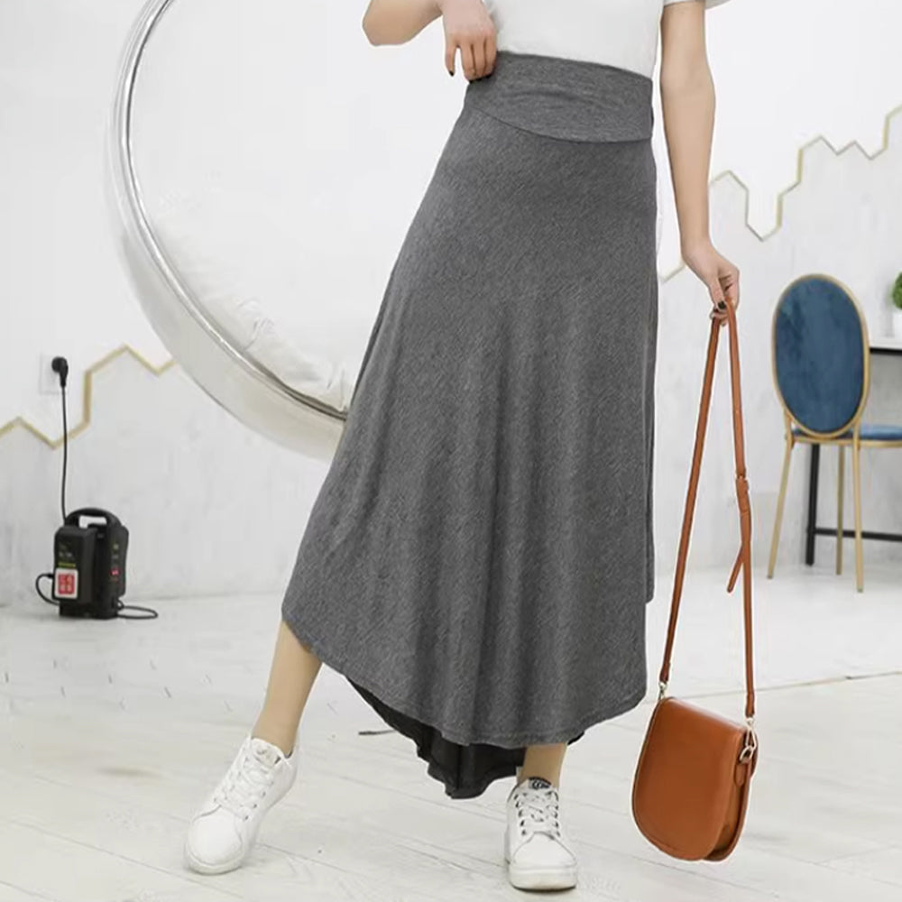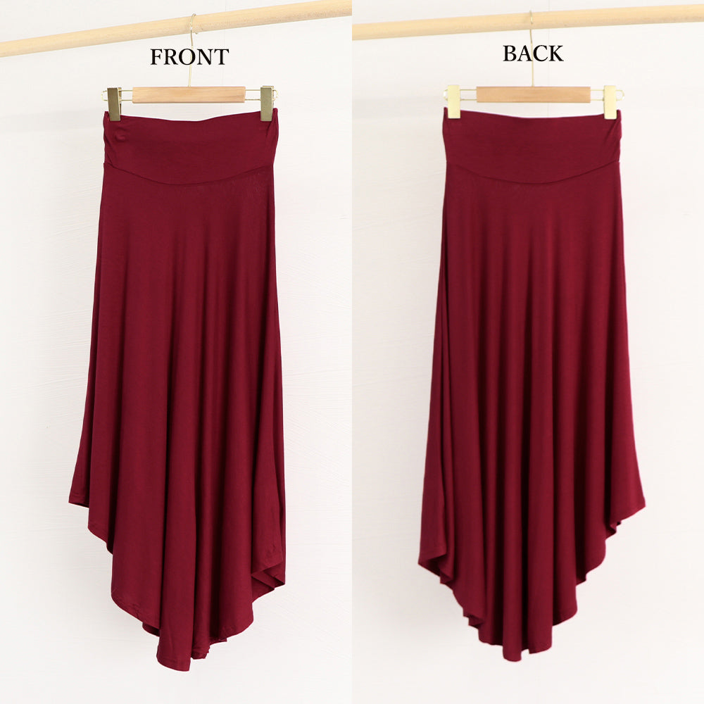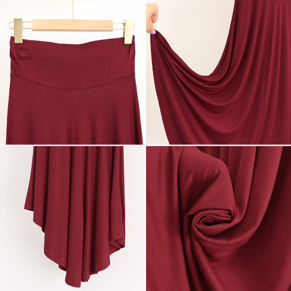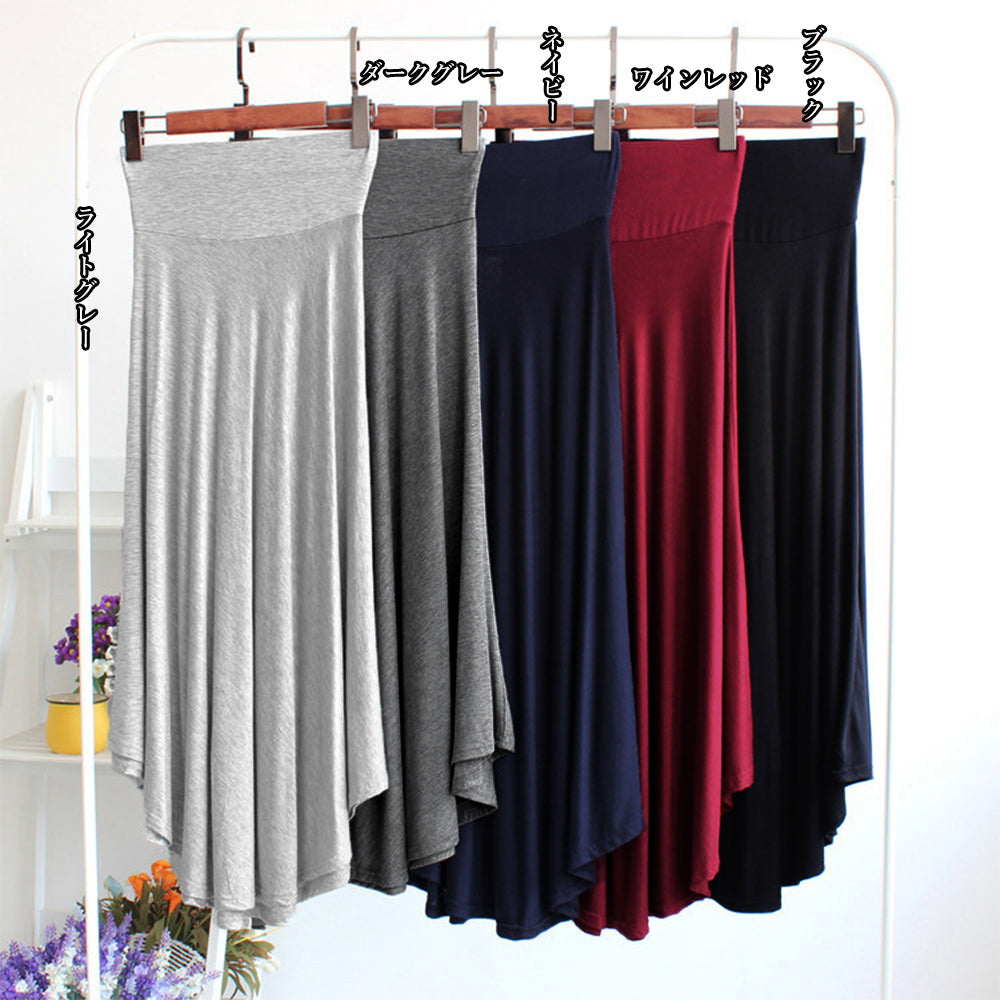 ハイウエスト フレアスカート 無地 ミディ丈aラインスカート 20代30代40代 低身長 レギュラースカート春秋夏 大人スカート着やせ ミモレスカート 黒 アシンメトリー裾 とろんと落ち、歩く度に優美に揺れ、上品な印象になるアンバランス丈とろみスカート きれいめテイストながらも、ストレッチ素材&ウエストゴムで穿き心地が楽ちん シンプルカラーからメイン使いできる着映えカラーまで多色展開、合わせるアイテムを選ばず、ロングシーズン重宝する1枚 素材:レーヨン95%+ポリウレタン5% カラー:ブラック/ダークグレー/ライトグレー/ネイビー/ワインレッド サイズ:ワンサイズ スカート丈:最短約70cm/最長約84cm ウエスト(ゴム仕様):約64-100cm ヒップ:約120-152cm 裏地:なし 伸縮性:ややあり 透け感:なし