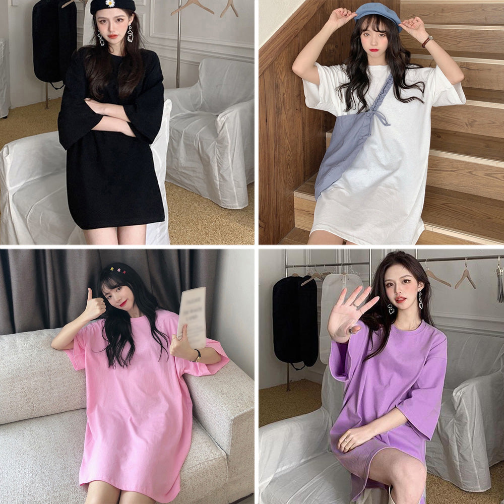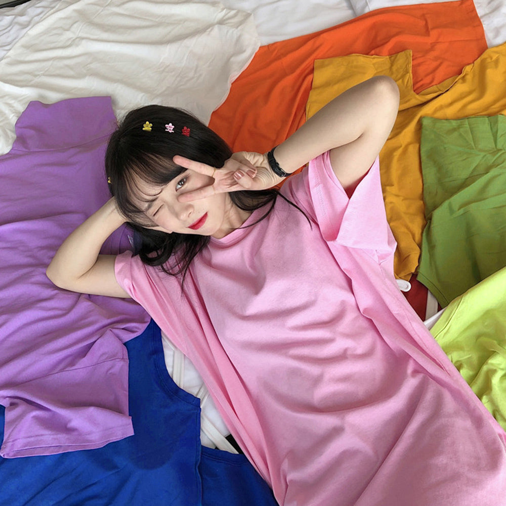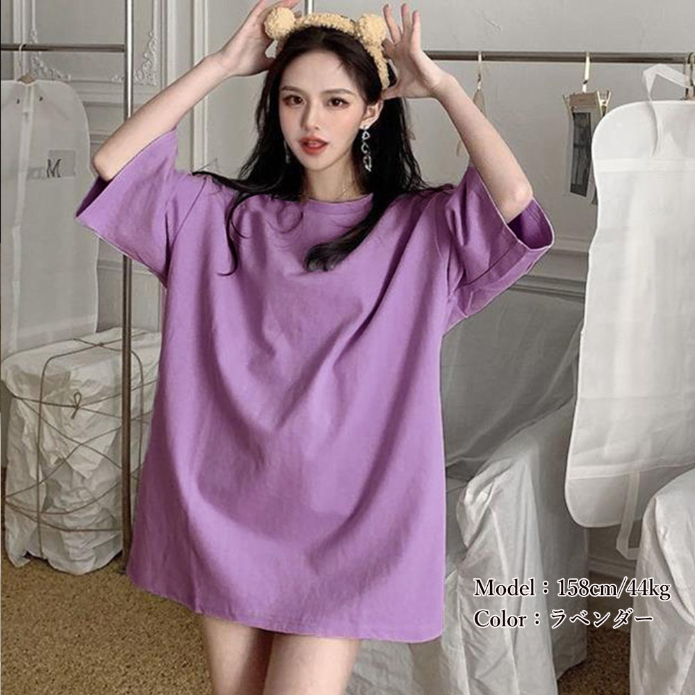 ロングTシャツ レディース ビッグtシャツ シンプル チュニックロンT 半袖 カジュアル クルーネック
