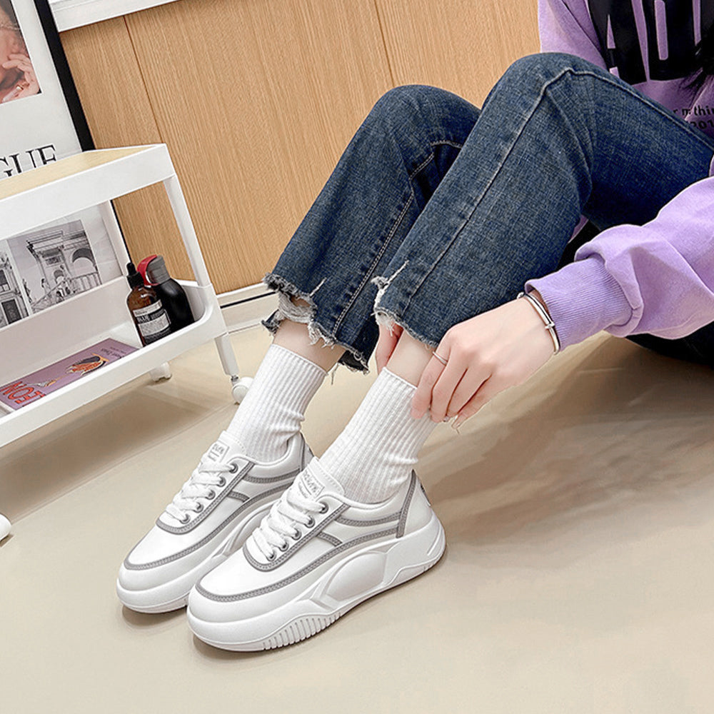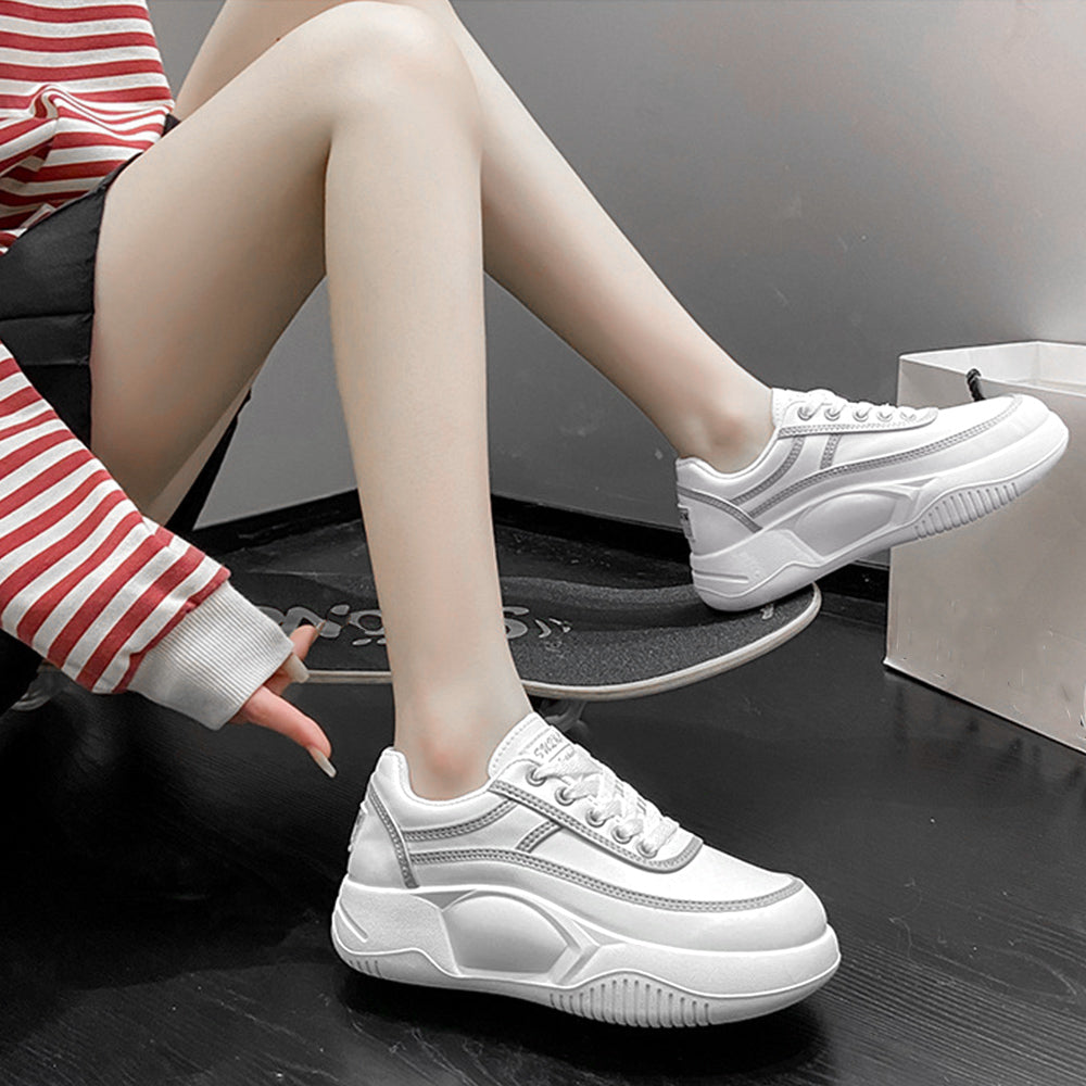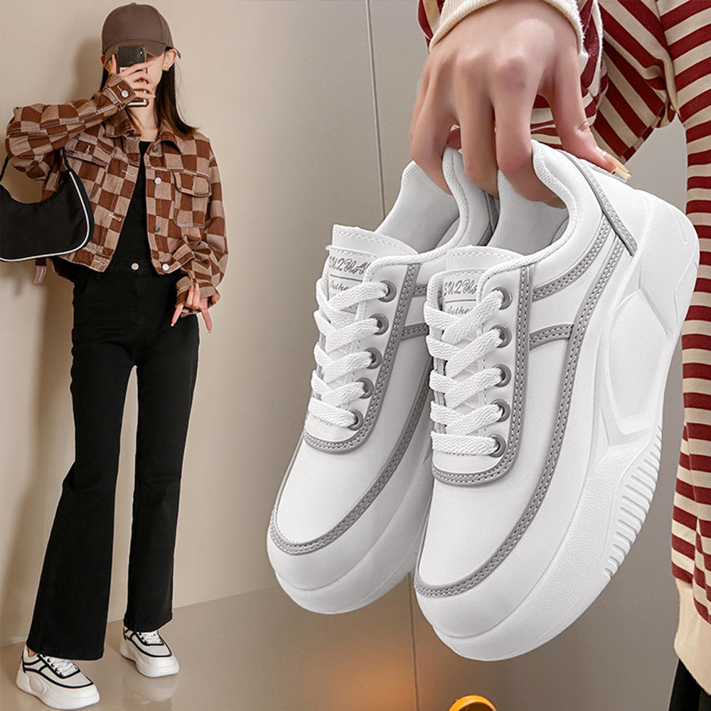 厚底スニーカー レディース 疲れない レースアップ ローカットスニーカー 白 通勤通学靴 歩きやすい
